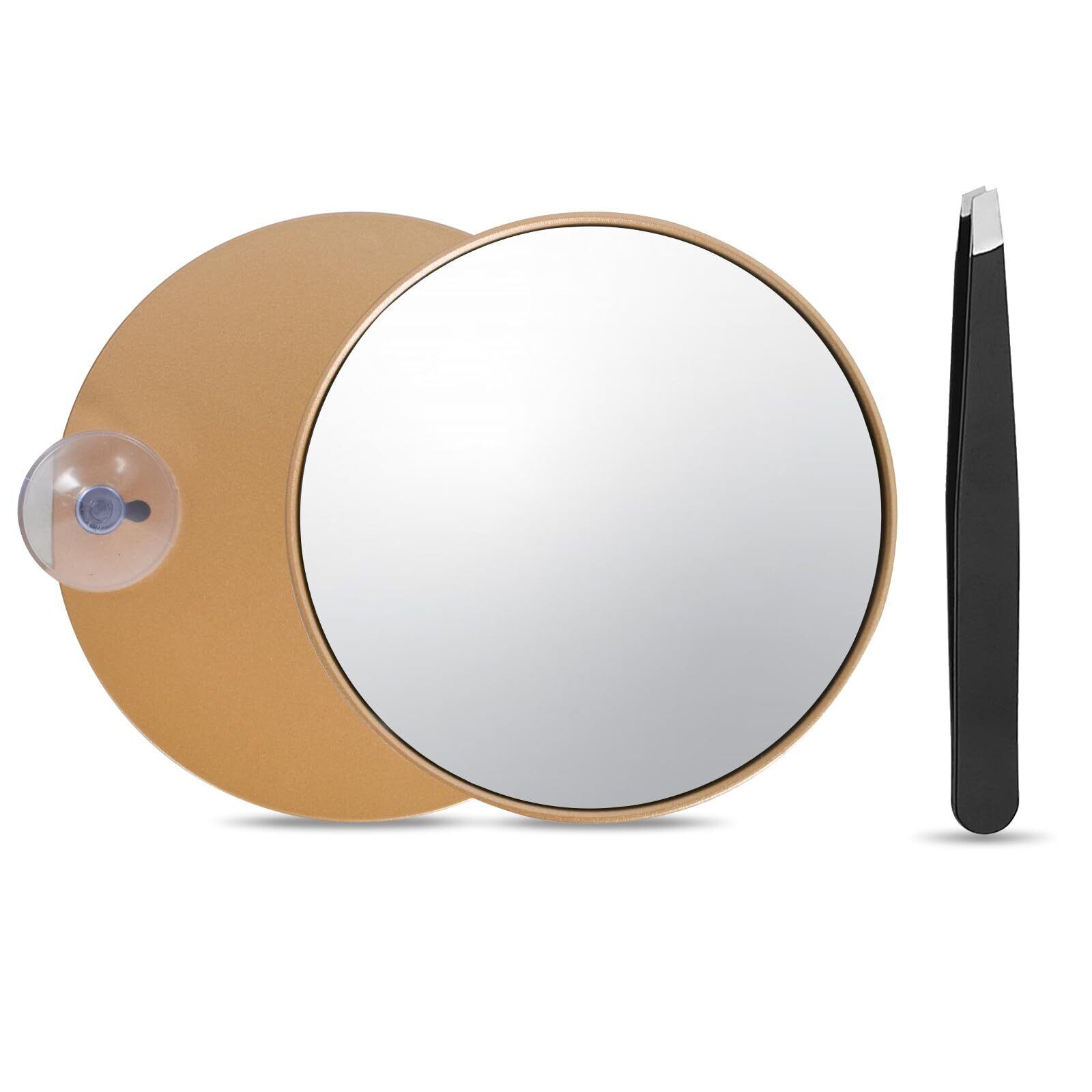 拡大鏡 30倍 化粧用 ポータブル化粧鏡 吸盤付き ピンセット付き バニティミラー 拡大鏡 コンパクトミラー 拡大鏡 ハンドバッグ、旅行、寝室、浴室、バスルーム、髭剃り、シャワーに (ゴールド)