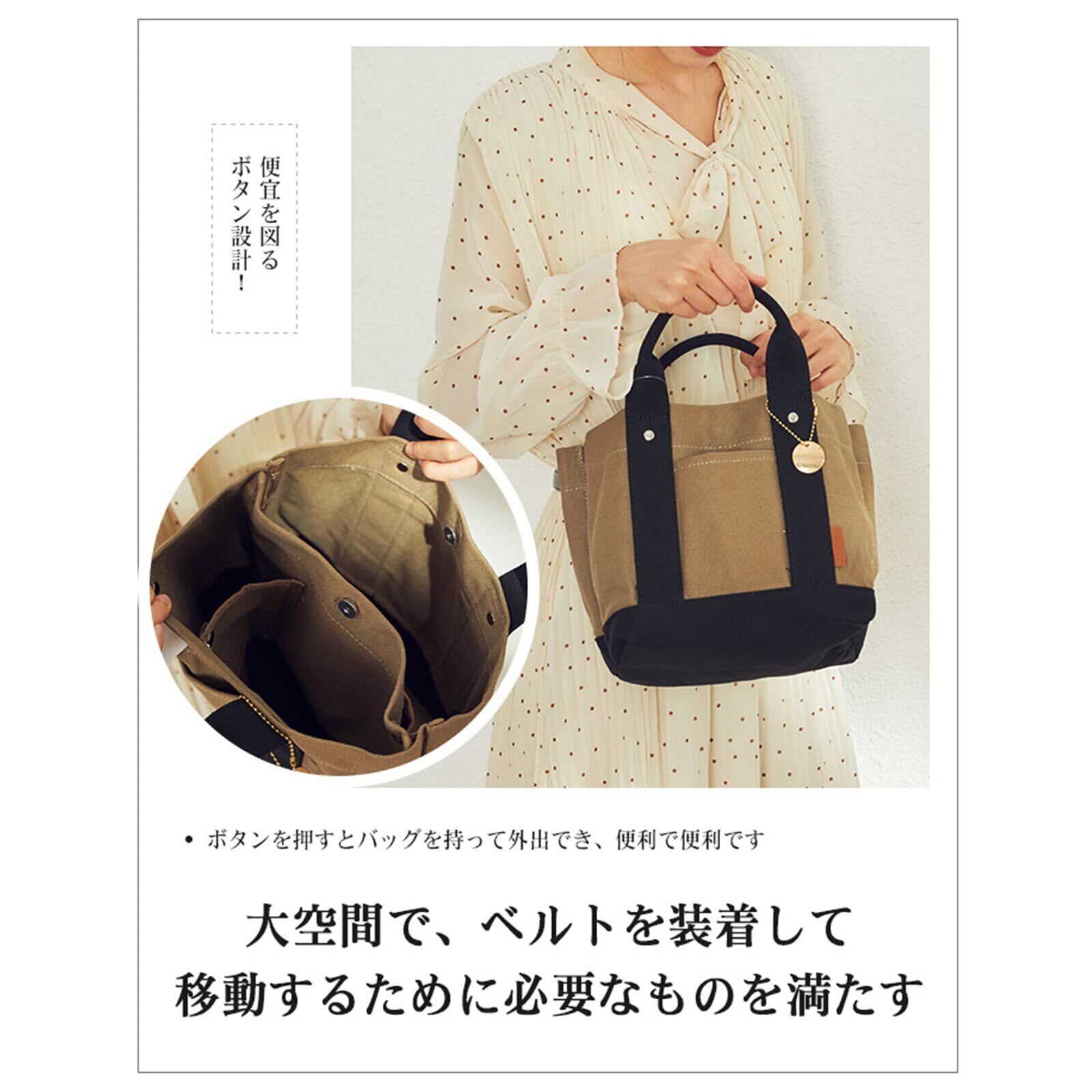 【3層 隠しポケット】トートバッグは、レディースに最適な小さめサイズで、底にICカード入れが付いています。軽量で使いやすく、3つの仕切りがあるので、荷物を整理しやすく、ミニトートバッグとしてもおすすめです。キャンバス生地を使用しており、耐久性があります。内ポケットは3層式(小/中/大)で、収納場所を選ばず、大切なものを取り出しやすくなっています。また、外ポケットが2つあるので、携帯電話や鍵などを取り出しやすく、カードポケットも1つあるため、カード類をまとめて収納できます。