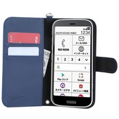 wisers らくらくスマ-トフォン F-52B 対応 手帳型スマホケース (ダークブルー) (カードホルダー/スタンド機能付き) ストラップ 2種付き (ハンドストラップ/ネックストラップ) プレゼント