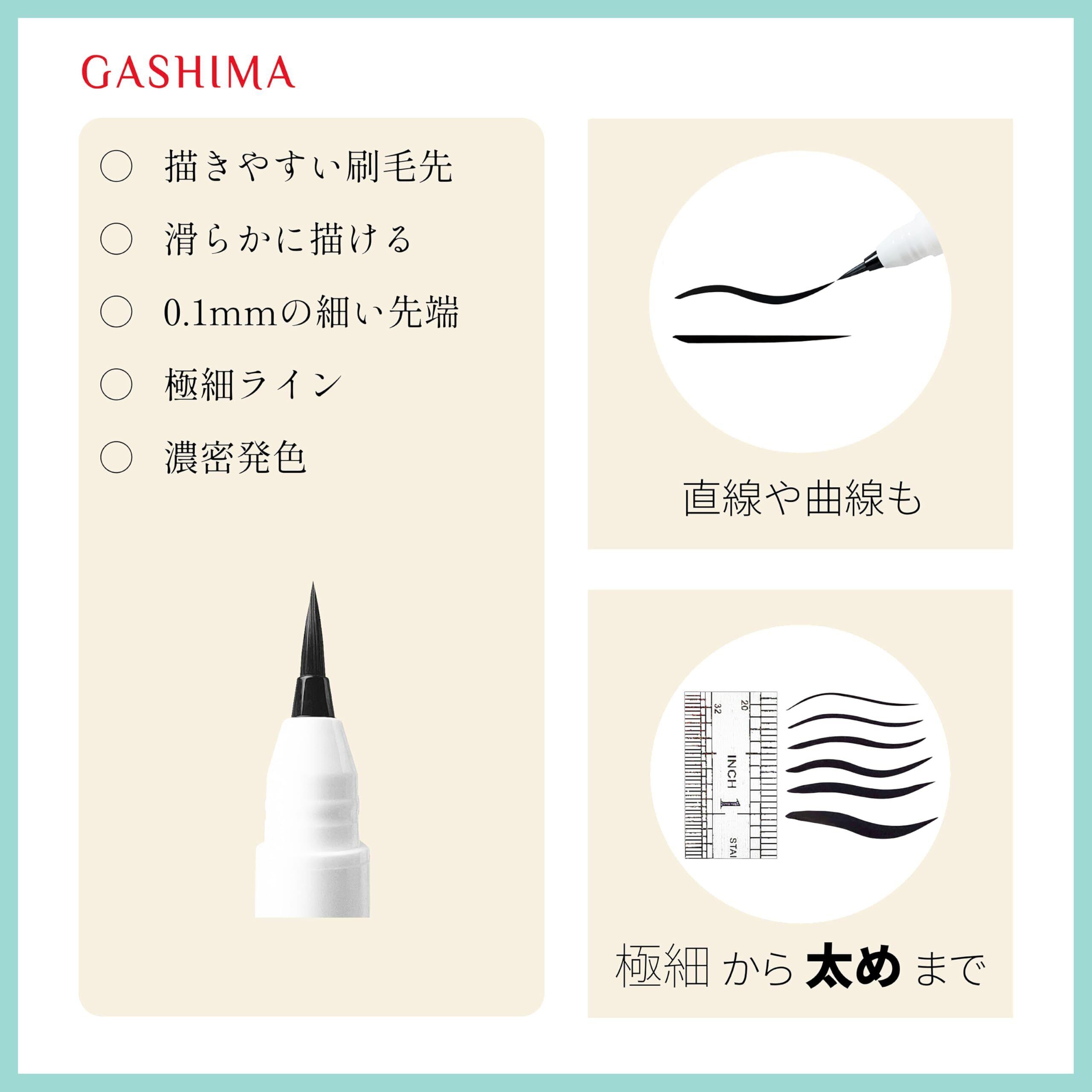 GASHIMA Liquid Eyeliner ガシマ リキッドアイライナー BS-BK1, 漆黒ブラック, ウォータープルーフ, 速乾, 24時間色落ちにくい, にじみにくい, 0.1mm描きやすい筆先, 極細ライン, 滑らかに描ける, 0.6mL, 日本製