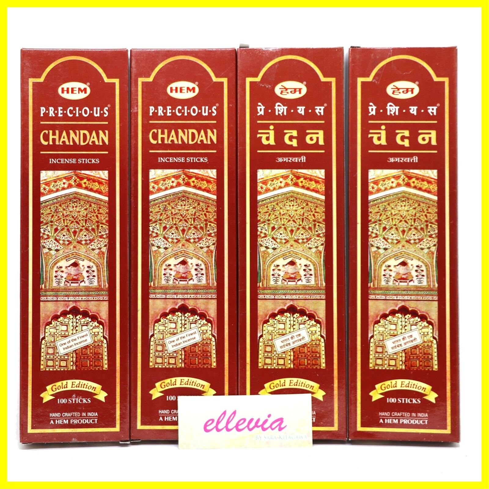 HEM インドお香スティックタイプ 【プレシャス・チャンダン】エコノミーパック (4箱セット) 【お香の世界へようこそセット】