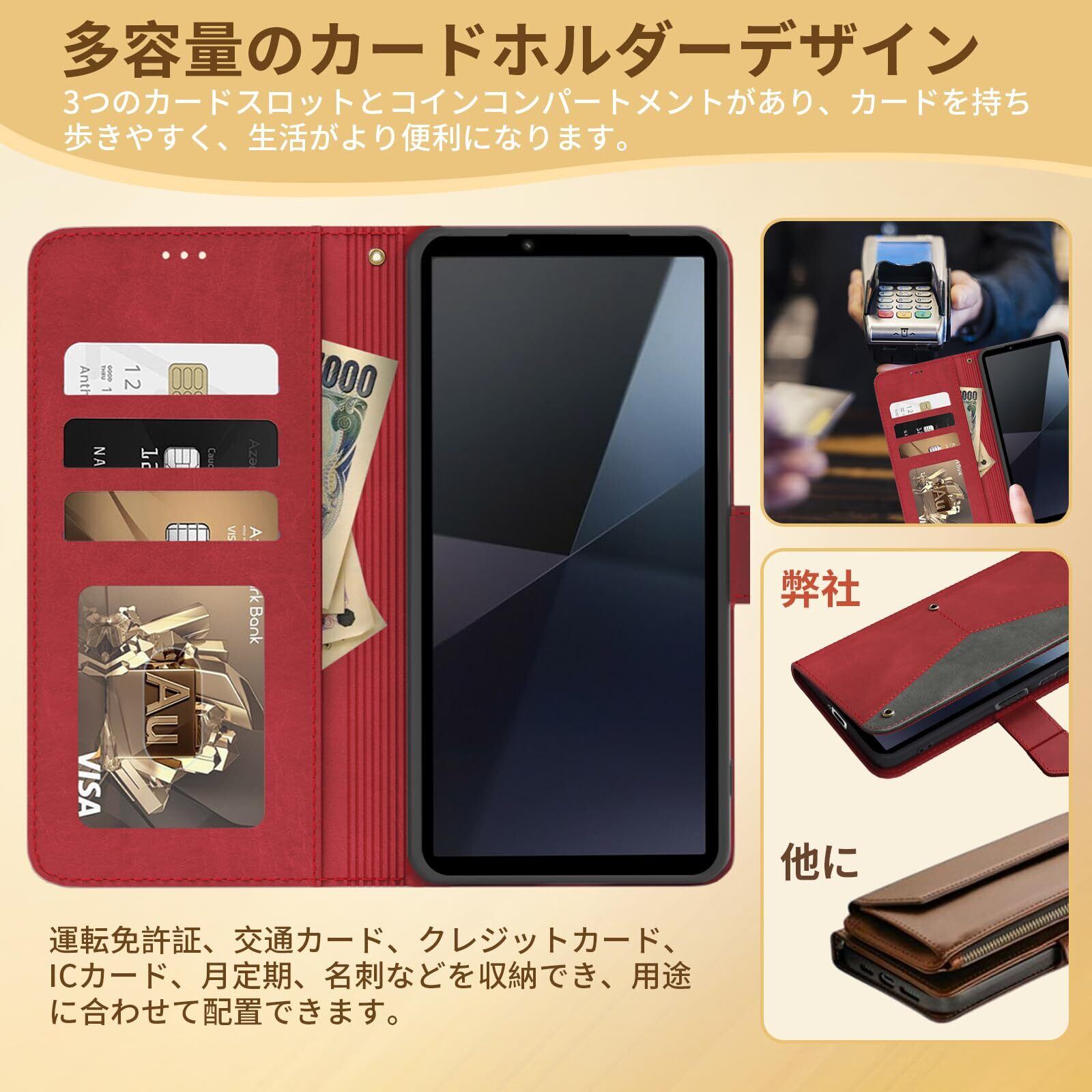 Xperia 10 VI ケース 手帳型 財布型 全面保護 耐衝撃 エクスペリア 10 VI スマホケース カード収納 肌感レザー ラップホール付き 横置き機能付き マグネット内蔵 SO-52E SOG14 XQ-ES44 携帯カバー 指紋防止 耐摩擦 ファッション ベルトマグネット,レッド