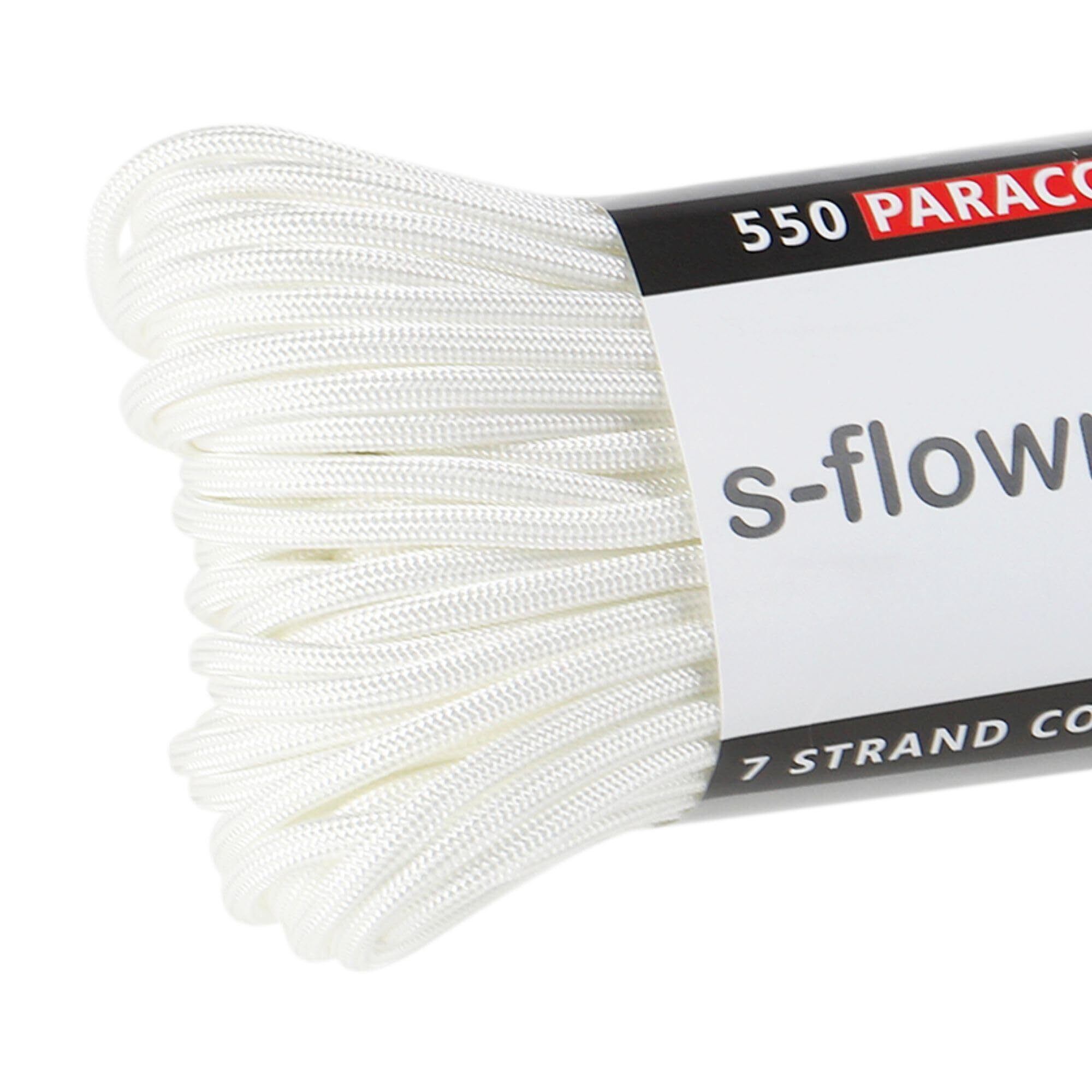 スフローム(s-flowme) パラコード 7芯 4mm x 30m 全60色 耐荷重 250kg クラフト パラコード アクセサリー アウトドア キャンプ テント タープ 用固定用紐 ガイロープ ロープ A11 ホワイト