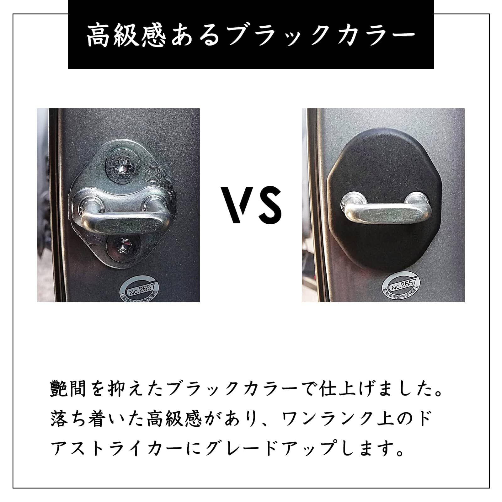 艷間を抑えたブラックカラーで仕上げました。落ち着いた高級感があり、ワンランク上のドアストライカーにグレードアップします。 MAZDA マツダ専用 車ドアロックカバー 適合車種: