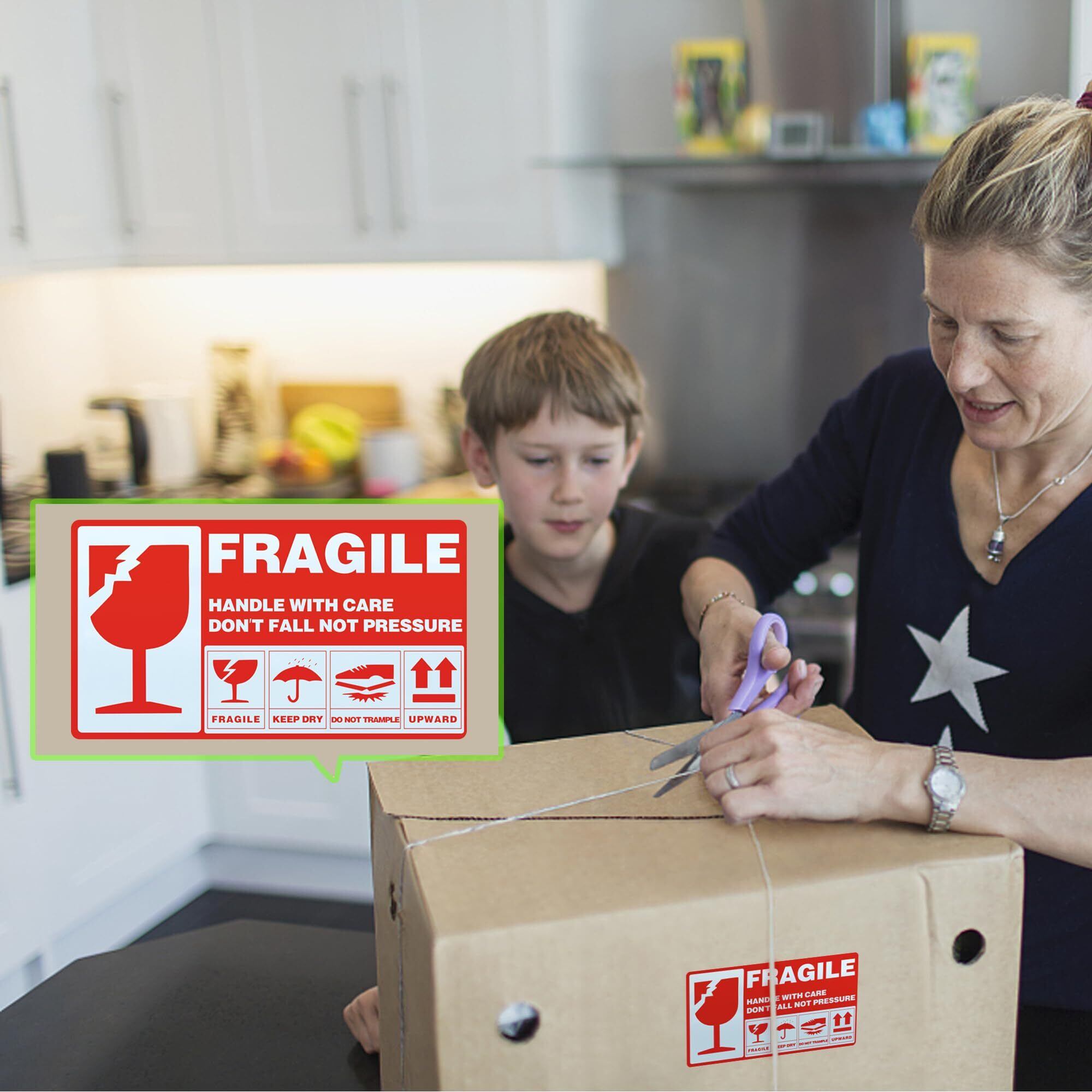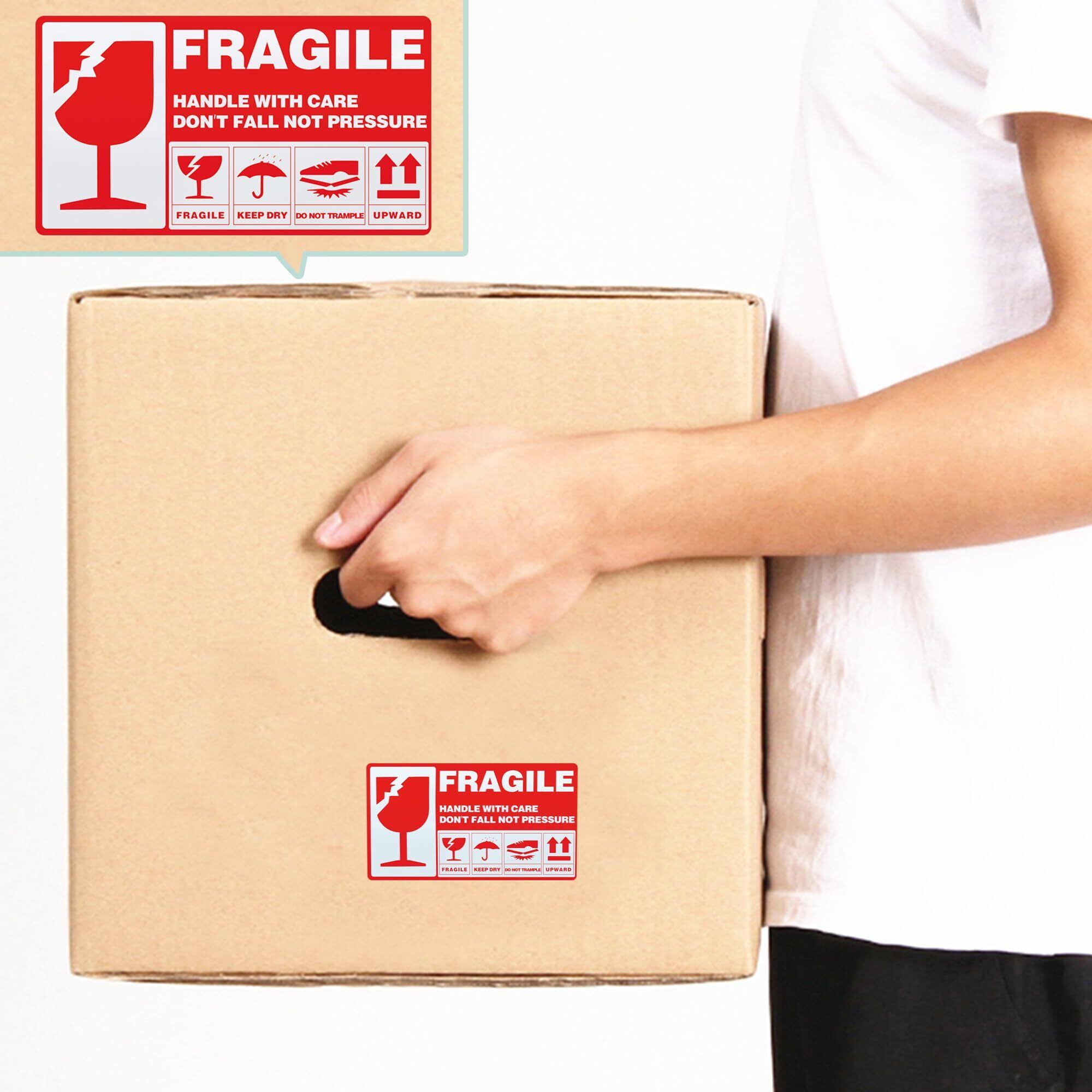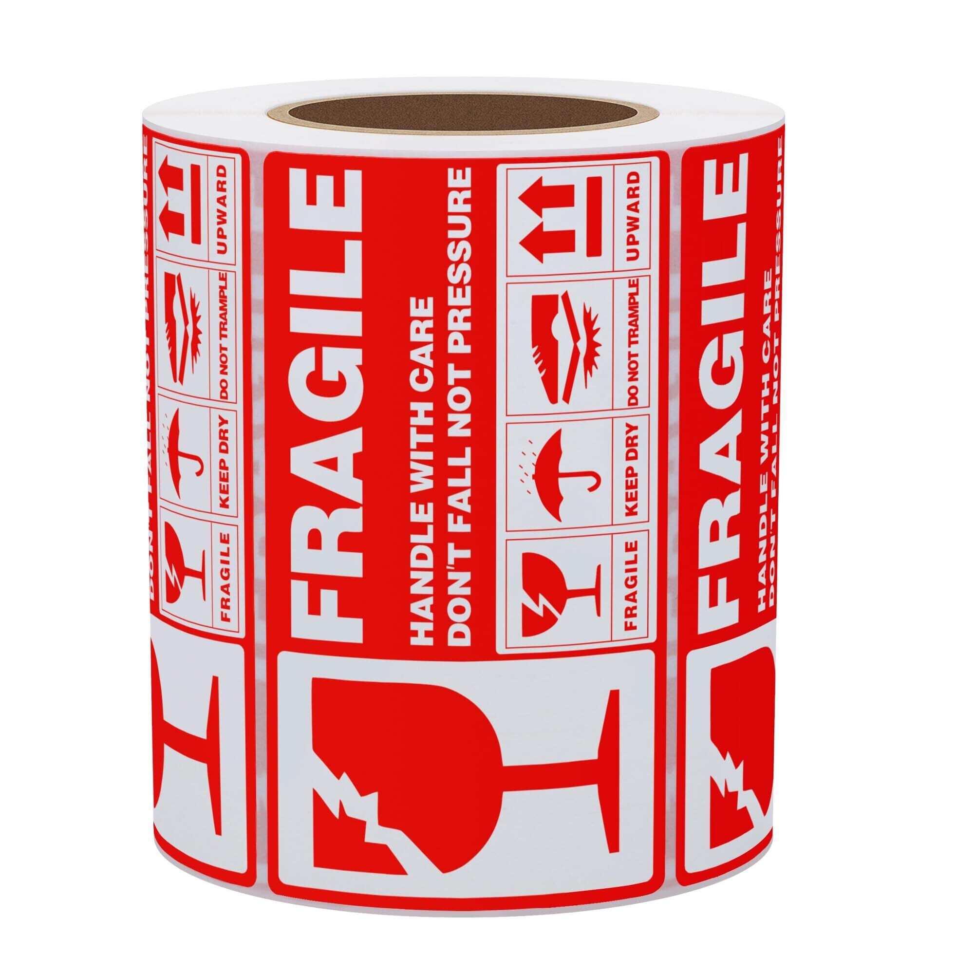 90 x 50 mm fragile 割れ物注意 シール、200枚/ロール。取り扱いに注意しなければならないすべての荷物やインテリアなどに使用でき、高価な商品や荷物の破損を防ぐことができます。小物やメールに貼るときにもぴったりです。国内でも海外でも使えます。簡単にはがして、物品に貼り付けることができて、脱落しにくい。広く使われている割れ物注意シールです