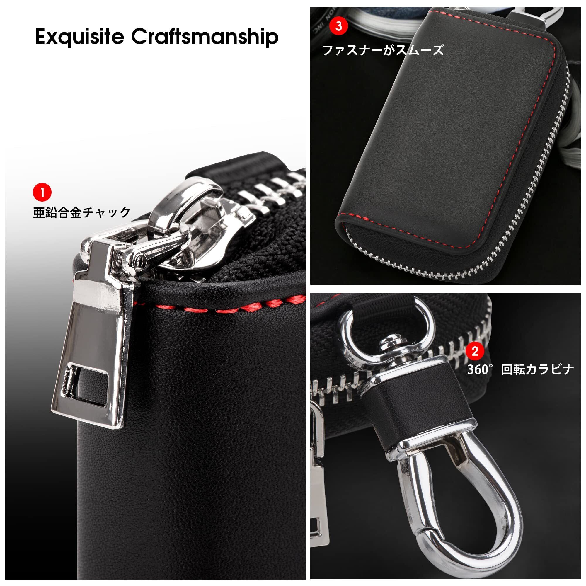 [Migeec] キーケース スマートキーケース 車キーケース メンズ レディース キーホルダー カードキーケース カラナビ付き コンパクト スリム プレゼントに 六連 4連可 多機能 男女兼用 (六連, ブラック)