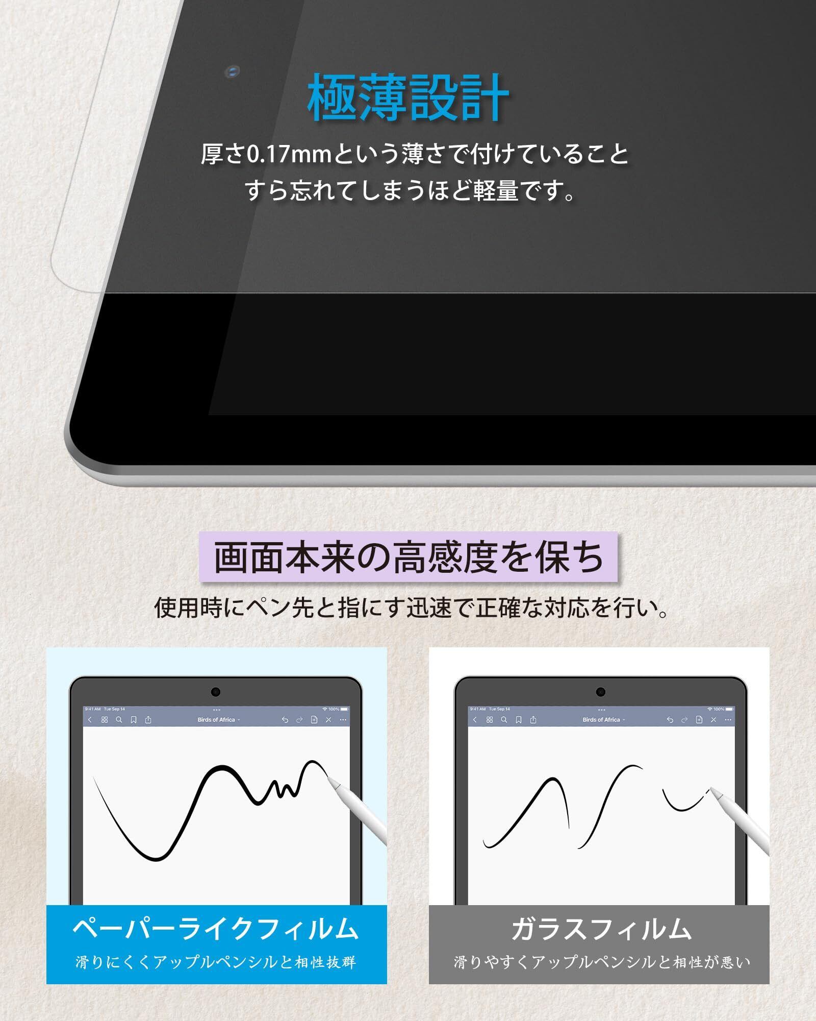 【極薄高感度】iPad 10.2 フィルムは0.17mmの厚さを採用して、高感度処理されて、元の反応感度を維持します。超薄型紙スクリーンプロテクターはガラスより、スライドせず、マットな表面でスクリーンに書いても滑りません。