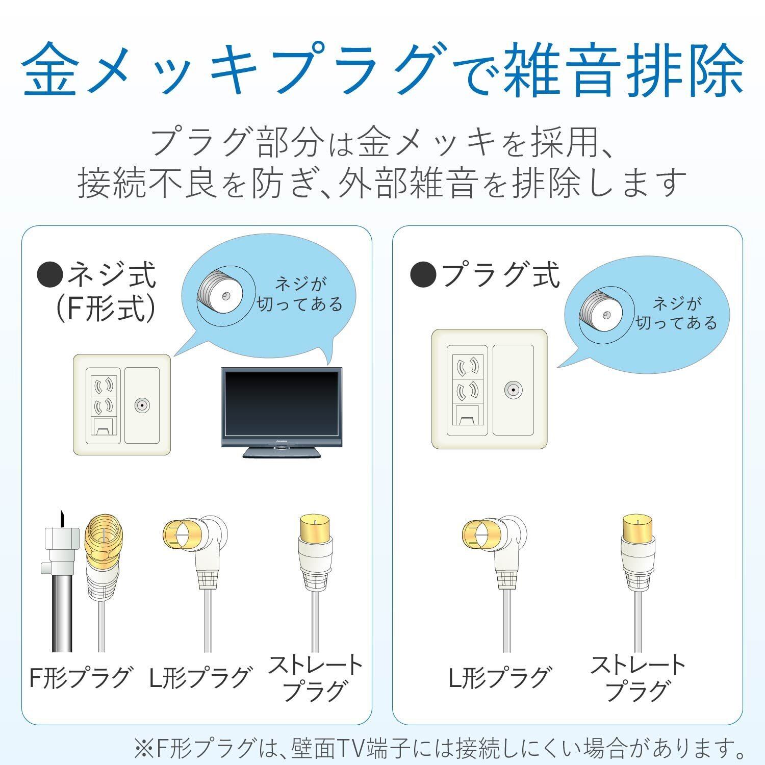 【使い勝手に優れたデザイン!】1mのケーブルサイズは、テレビの設置環境に柔軟に対応できる便利な長さです。しなやかな4C同軸ケーブルは、設置や配線をする際にも気軽に取り扱えるため、狭いスペースでも問題なくご使用いただけます。