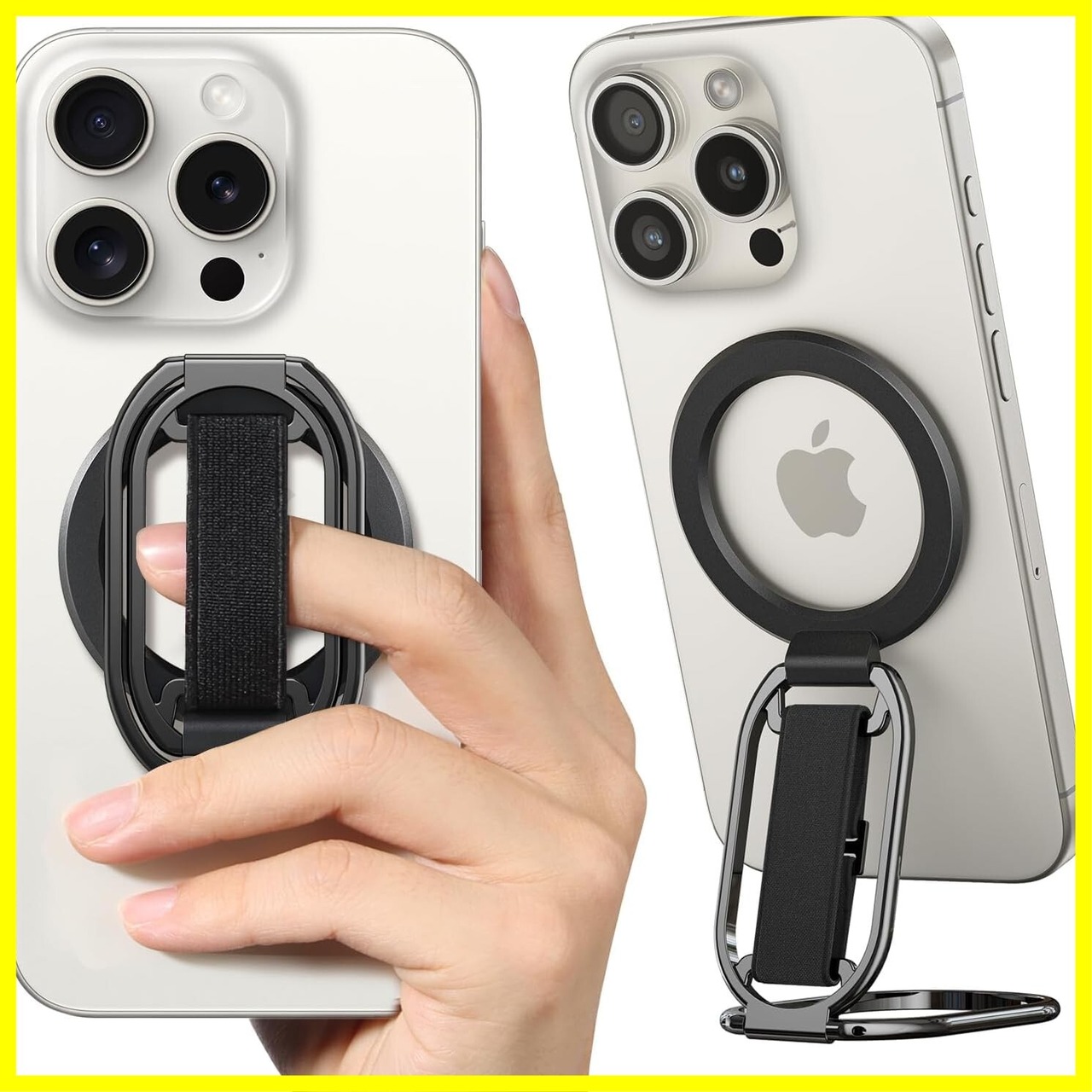 【 4-in-1 最新構造 】 enGMOLPHY MagSafe対応バンカーリンググリップ マグセーフキックスタンド マグネッツフィンガーループ 磁気リングホルダーストラップ 取り外し可能 安定性, 【iPhone 13/14/15/16/17シリーズ用 】 マグセーフ対応アクセサリー(黒)
