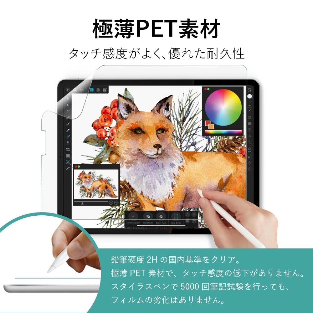 【画面を保護】:iPad 9.7用 高光沢 透明 フィルムは鉛筆硬度2Hの国内基準をクリア。iPadの画面を保護します。【耐久性】:フィルムは耐擦傷性試験にて、500gのスタイラスペンで5000回の筆記試験を行っても品質の劣化は認められませんでした。