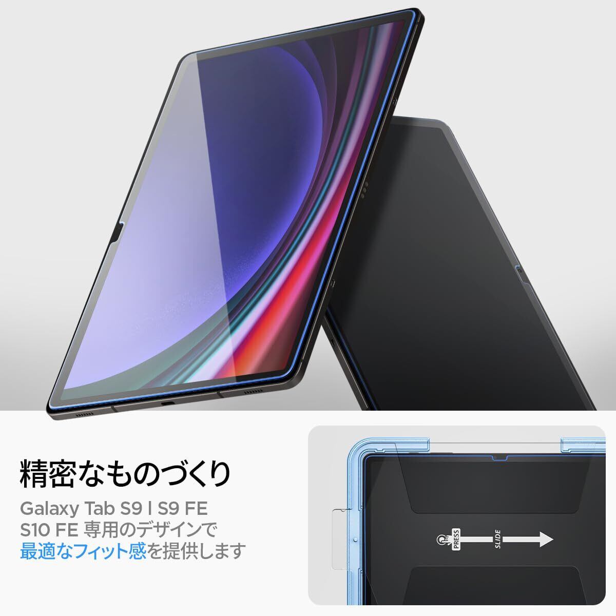 Spigen Galaxy Tab S10 FE/S9FE/S9 ガラスフィルム 貼り付けキット付き 9H強化ガラス 保護フィルム ナノコーティング EZ Fit 1枚入 AGL07000