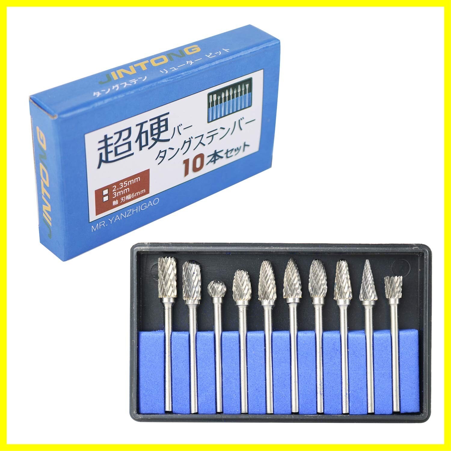 JINTONG リューター ビット ドリル ビット タングステンバー 超硬カッター ルータービット10本セット(2.35mm軸 刃幅6mm)
