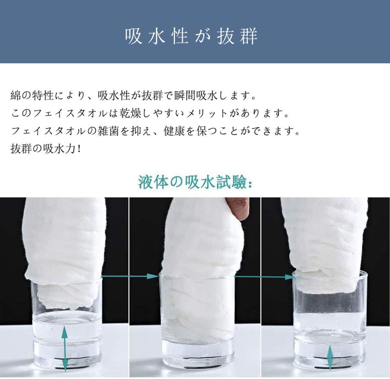 【吸水速乾】素材の表面は数えられない隙間があり、その隙間に大量の水分を素早い吸水できます。吸水力は普通のタオルより何倍もあり、吸水性が抜群です。乾き早いの特徴は注目されるポイントです、湿気による細菌の増殖を抑えられます。洗濯物を乾きにくい時期にも快適で使えます。