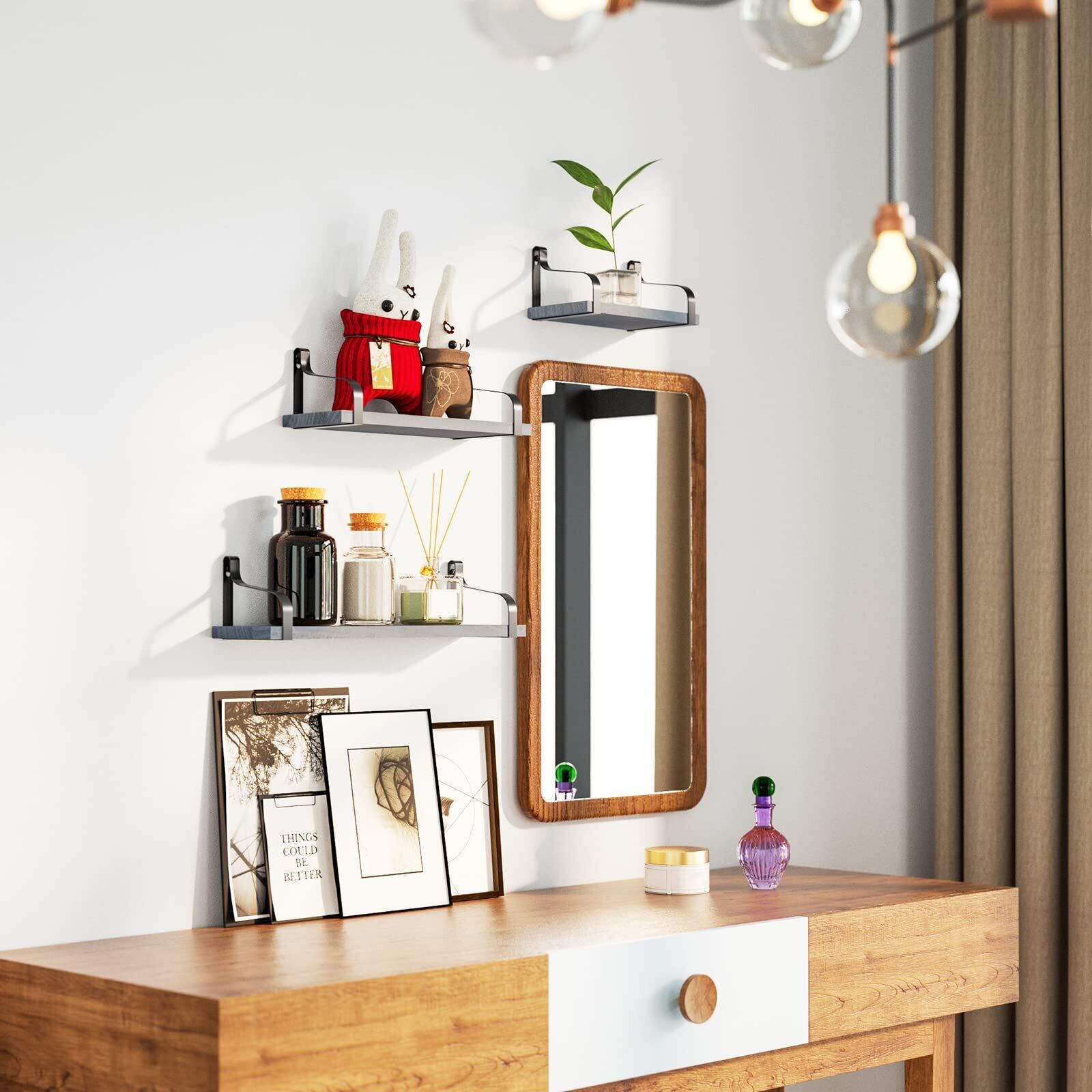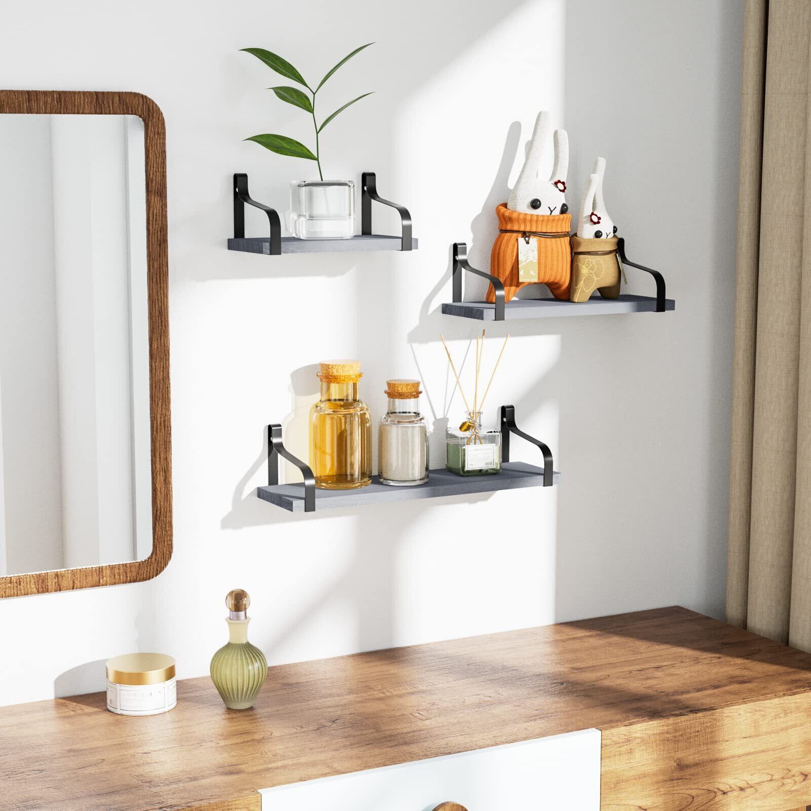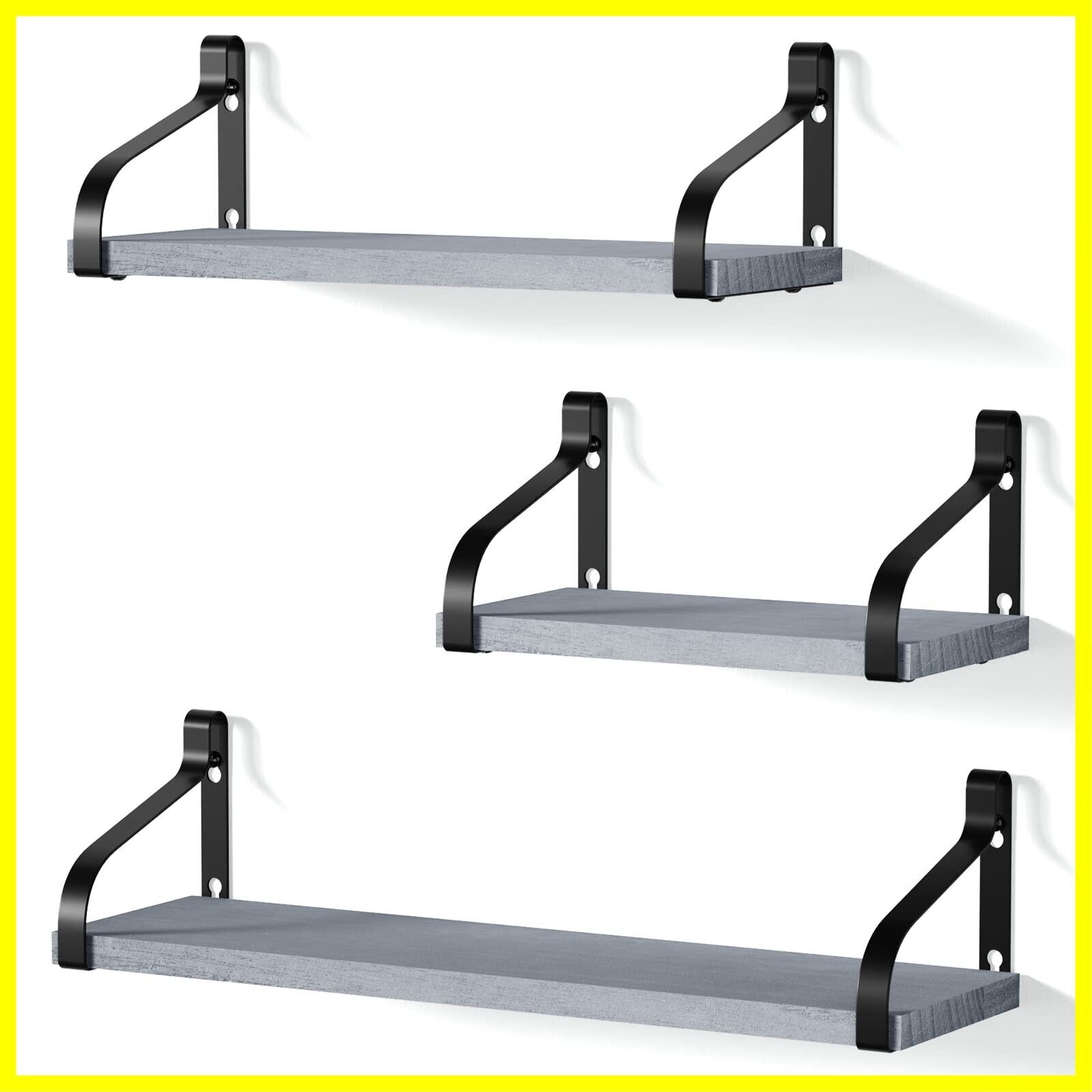 Love-KANKEI ウォールシェルフ ウォールラック 壁掛け棚 DIY飾り棚 収納棚 天然木製 ネジ付き 3個セット 調理器具 生活雑貨 整理整頓(23+33+43cm 3点セットグレー)