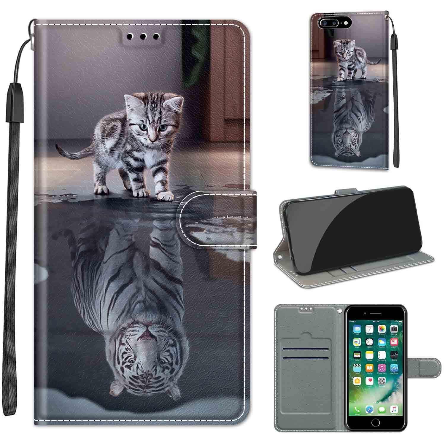 KENHONER iPhone 7 Plus ケース iPhone 8 Plus ケース 手帳型 アイフォン7 Plus ケース アイフォン8 Plus ケース PU 高級レザー マグネット カード収納 全面保護 薄型 耐衝撃 横置き おしゃれ 人気 携帯カバー iPhone 7 Plus/8 Plus対応 (猫と虎)