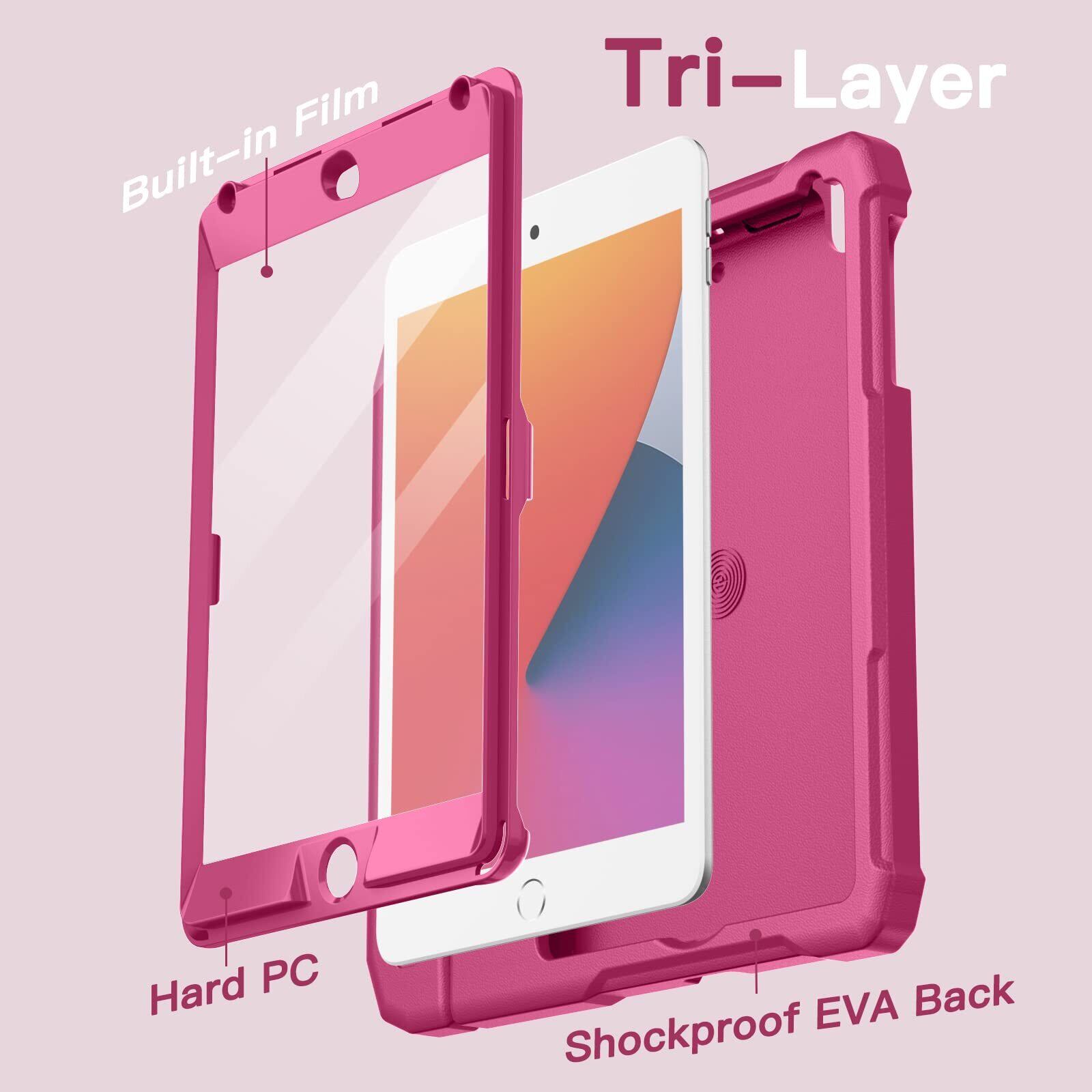 JETech 子供用 iPad mini 5/4/3/2/1 ケース(7.9インチ、2019/2015/2014/2013/2012モデル)液晶保護フィルム付き 耐衝撃 フルボディハンドルスタンド タブレット保護カバー (プラム)