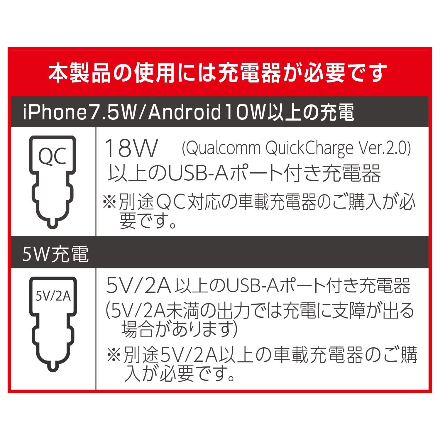 ●こ使用には車に設置された5V2A以上で充電可能なUSBポ ートかDC充電器が別途必要です。
