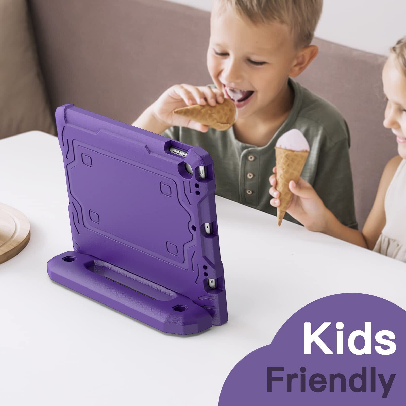 JETech 子供用 iPad 10.2インチ ケース (第9/8/7世代、2021/2020/2019) 液晶保護フィルム付き 耐衝撃 フルボディハンドルスタンド タブレット保護カバー (パープル)