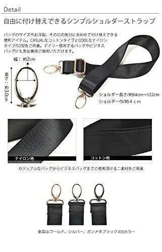 [Lelotte] ショルダーストラップ バッグ用 選べるコットン ナイロン 素材 ショルダーベルト 幅広 交換用 STP-BK