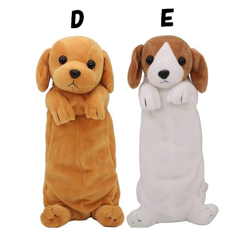 かわいいわんちゃんのぬいぐるみ型ペンケースです。 背中はファスナーなので開け閉めは簡単!文房具の他にもコスメや雑貨などのちょっとした小物入れ・ポーチとしても使えます。肌触りも良く、ぬいぐるみとしてもキュート!フック付きなのでバッグなどに取りつけOK!ワンポイントのマスコットとしてもかわいくてオススメです!