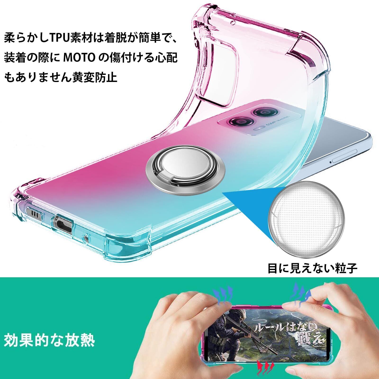 MOTO G53j ケース リング TPU 薄型 軽量シリコン グラデーション色 ケース Moto G53y 5G ケース スマホケース MOTO G53 カバー 耐衝撃 指紋防止 車載ホルダー対応 防塵 一体型 人気 携帯カバー (ピンクグリーン)