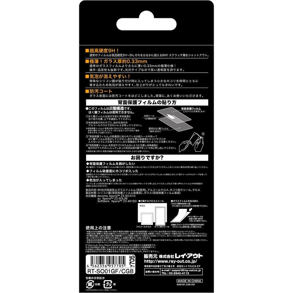 レイ・アウト Xperia Z3 SO-01G / au Xperia Z3 SOL26 / SoftBank Xperia Z3 401SO ガラスフィルム 9H光沢指紋防止ガラスフィルム(背面用) RT-SO01GF/CGB