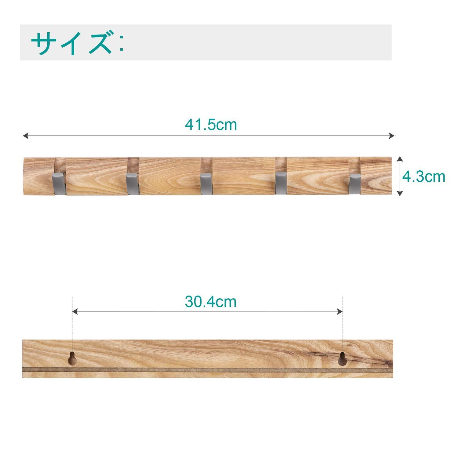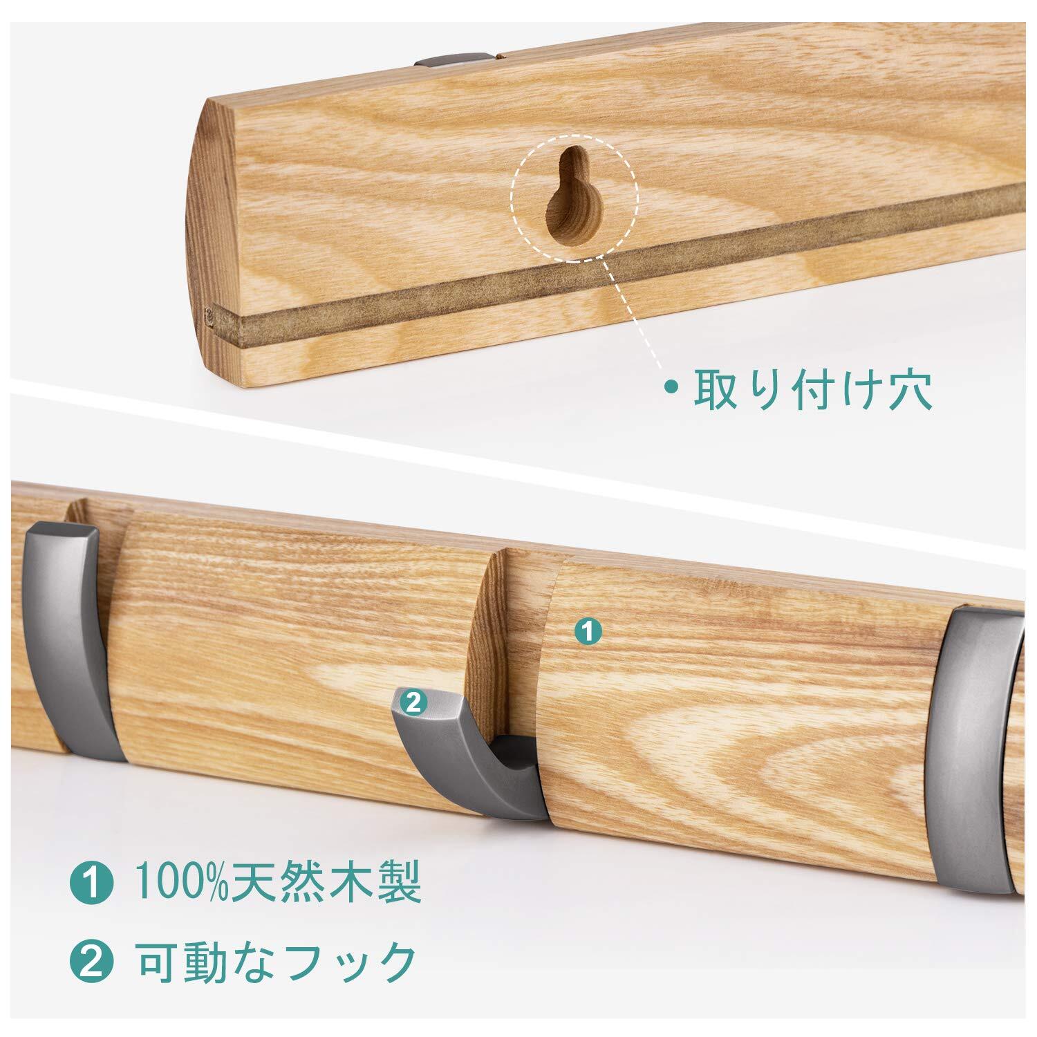 【天然木材】:ヨーロッパ輸入のアッシュウッドとアルミ製フックの組み合わせ、変色&変形しにくく、長持ちできるウォールハンガーです。ご注意:天然木製なので、色や木目には個体差があります。予めご理解ください。