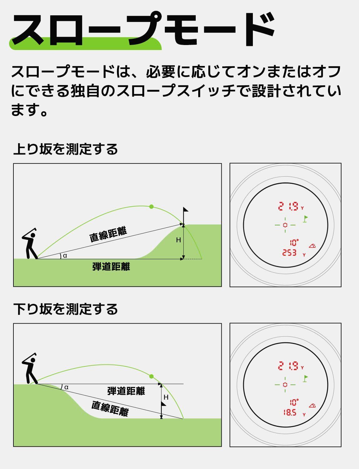 ・機能:スロープモード、ピンロックモード、高低差測定ON/OFF競技対応