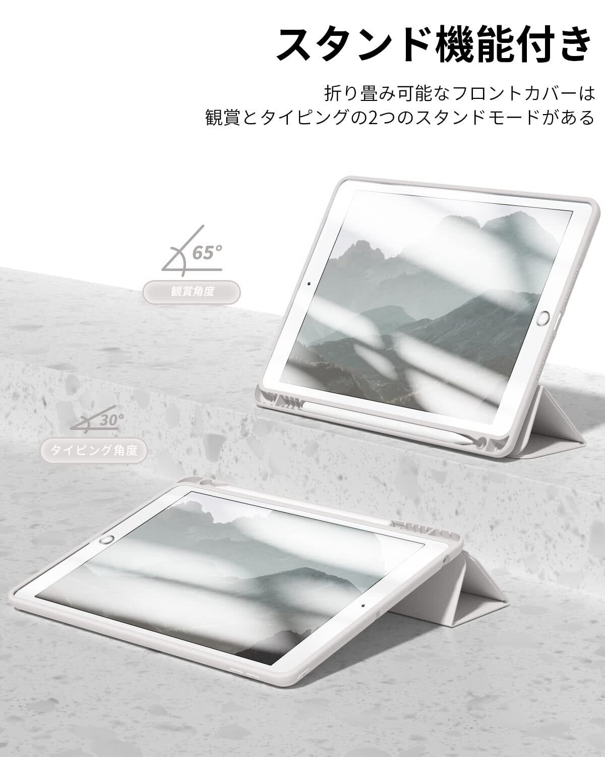 Aoub iPad 10.2 インチ 第9/8/7世代 (2021/2020/2019年) ケース オートスリープ/ウェイク機能対応 Apple Pencilペン収納・ホルダー付 スマートカバー ソフト TPU 薄型 軽量 耐衝撃 三つ折りスタンド グレー