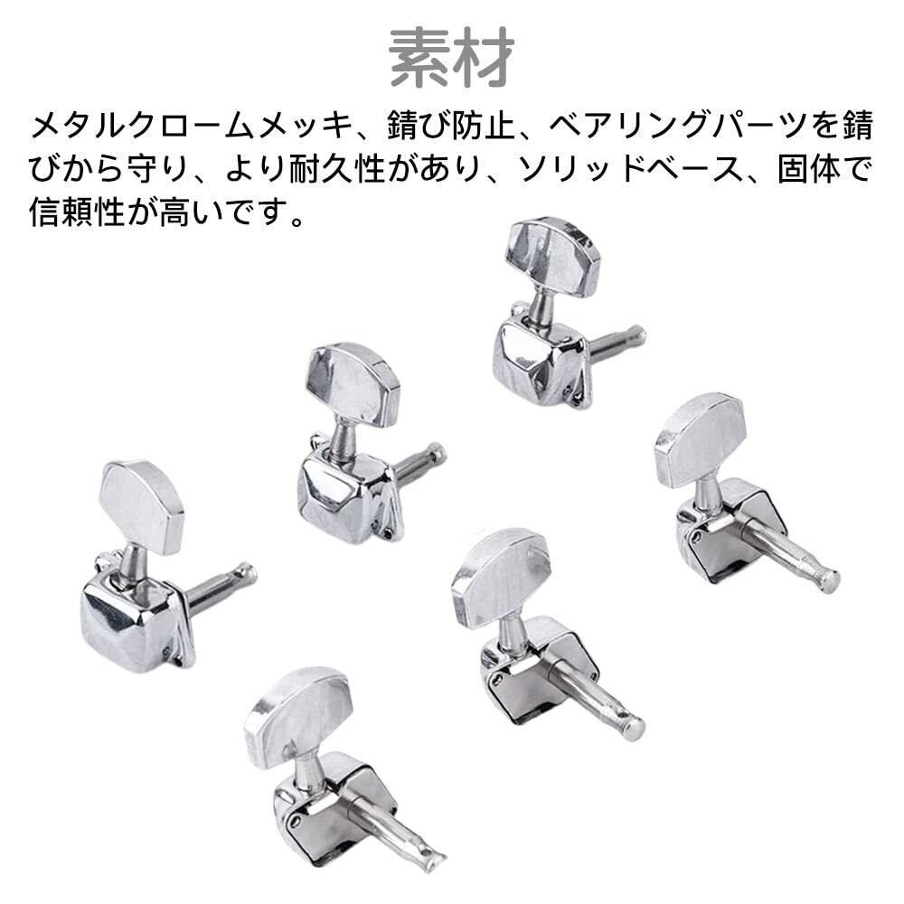 LIANHATA ギター用 ペグ 6個セット 3L&3Rギターペグ シルバー メタル ネジ付き 防錆 半閉鎖 チューニングペグ フォークギター チューナー ギターペグ ギターのツマミ 交換部品 取り付け簡単 (C)