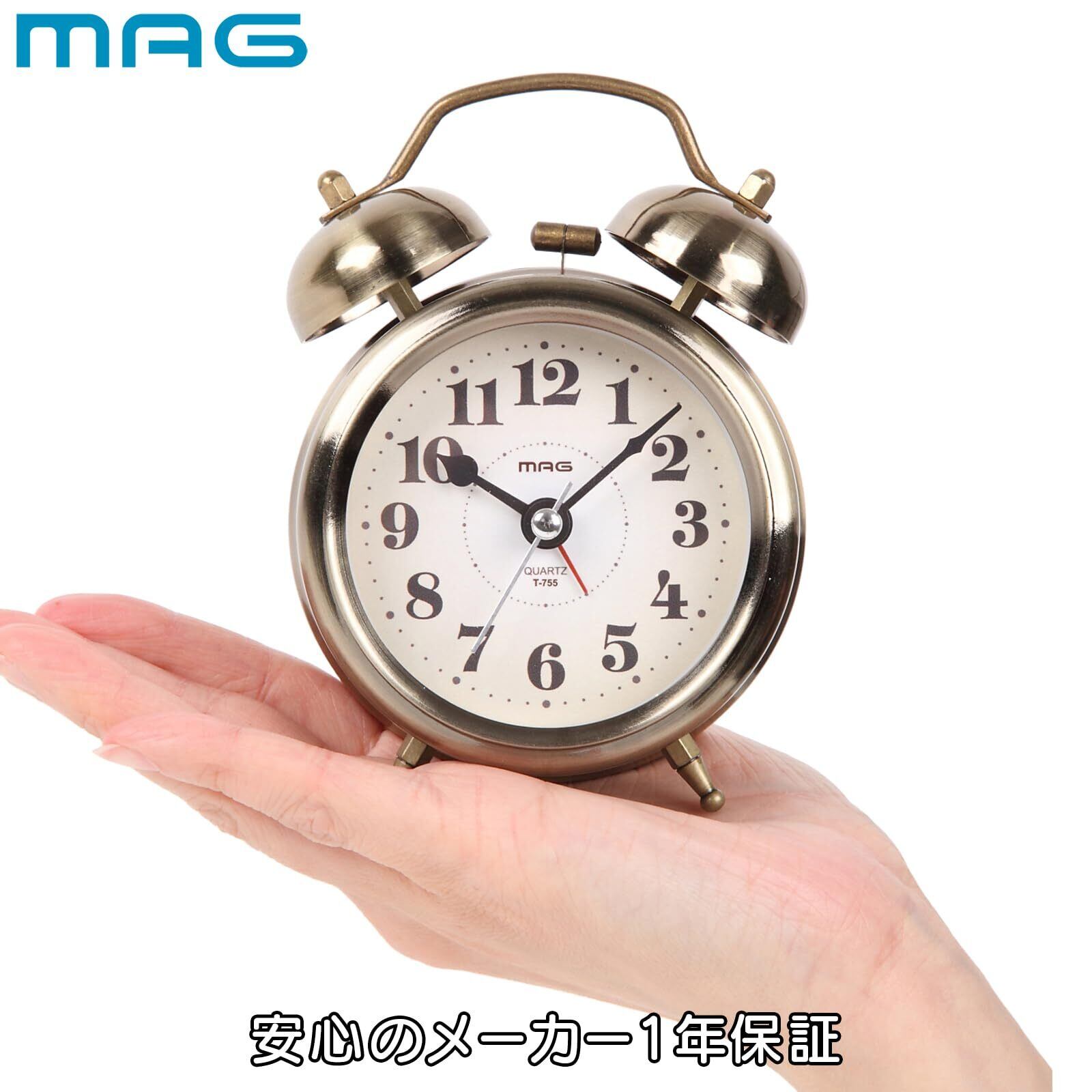 MAG(マグ) 目覚まし時計 置き時計 アナログ アンティーク おしゃれ かわいい インテリア ツインベル 静音 連続秒針 ベル音 アラーム スヌーズ ライト ゴールド T-755 AG-Z ノア精密