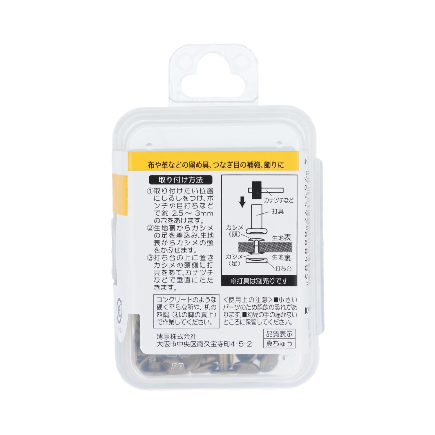 布や革などの留め具、つなぎ目の補強、飾りに。