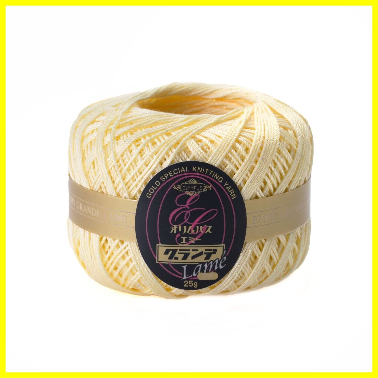 【華やかな輝きで手芸をグレードアップ!オリムパス エミーグランデ】「オリムパス製絲 エミーグランデ ラメ レース糸」は、あなたの手作り作品に華やかさをプラスするための理想的なアイテムです!美しいイエロー系のラメ糸が、手芸やクラフトの幅広い用途に対応し、創造的な活動をより楽しくします。