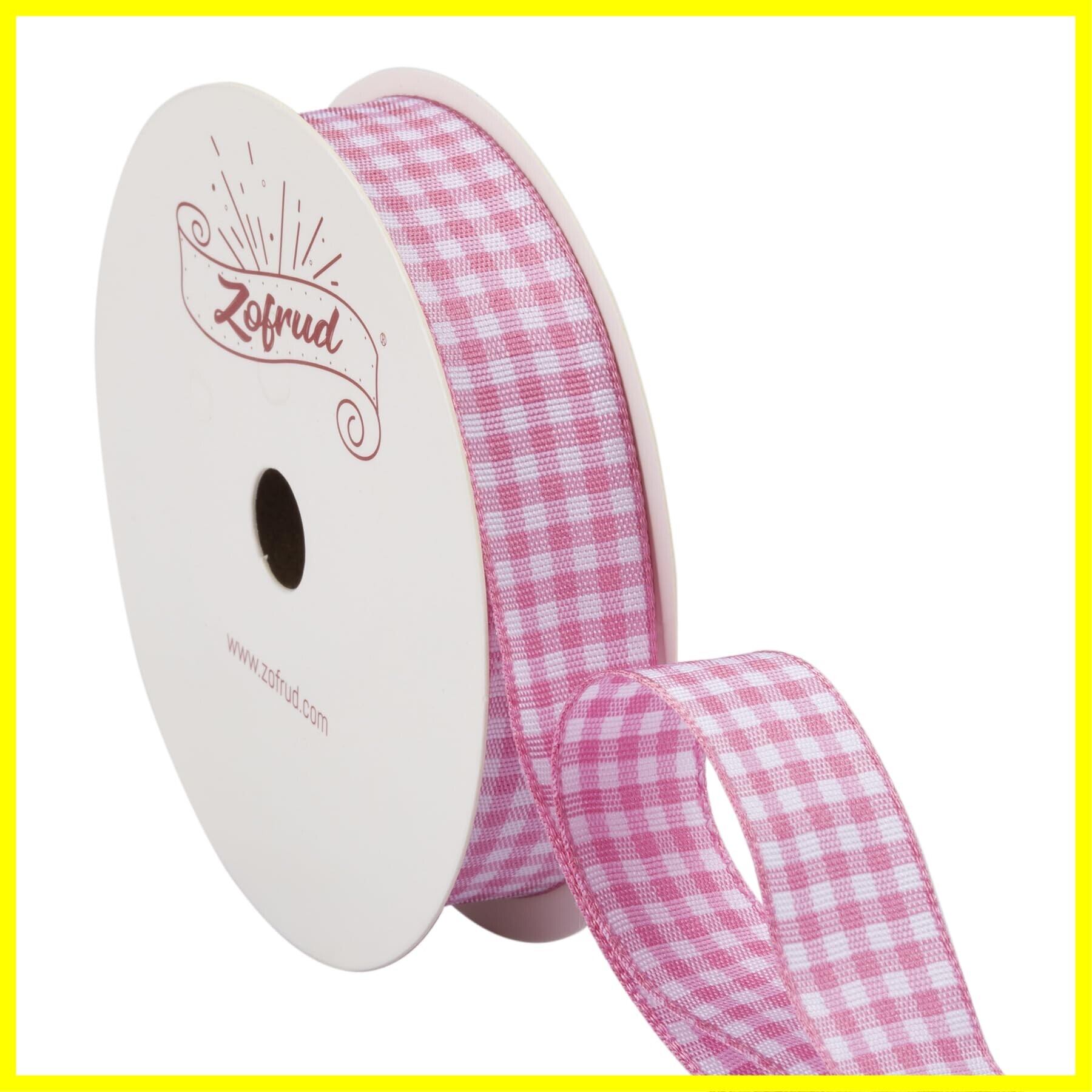 【Zofrud】チェックリボン幅16mm x 9m巻 - ハンドメイド・DIY・手芸・ラッピング・花束・ウェディングに最適 (ピンク)