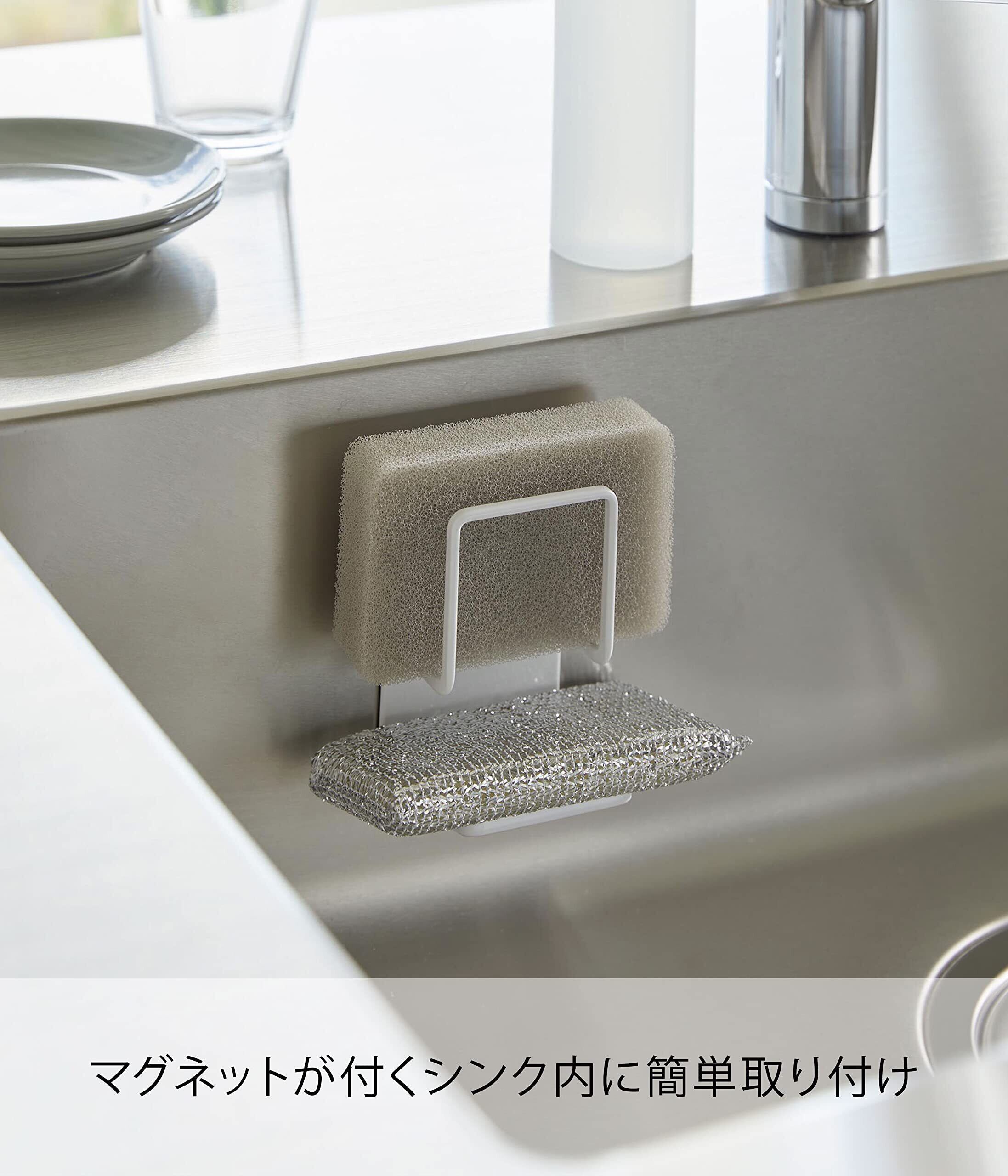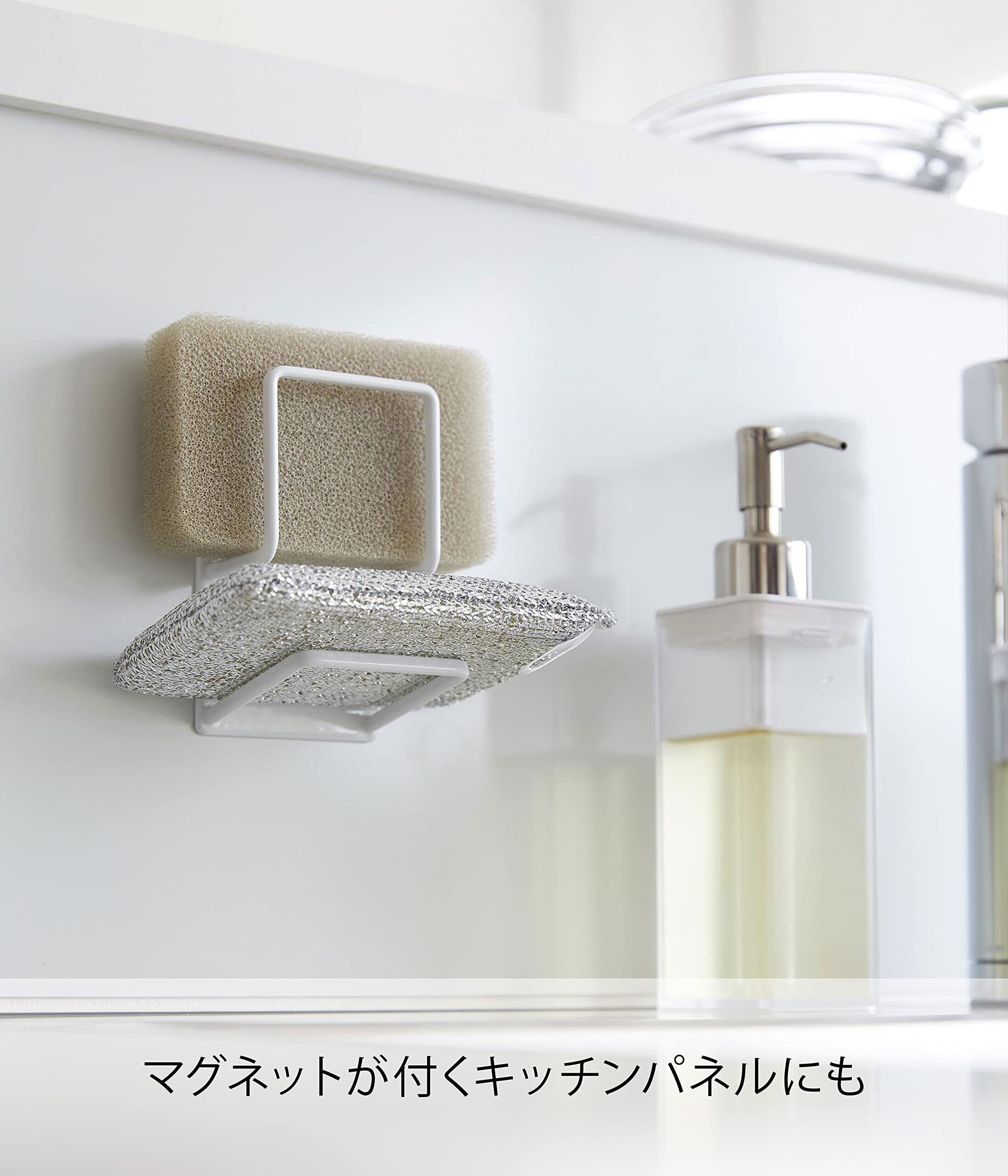 山崎実業(Yamazaki) マグネット スポンジホルダー ダブル ホワイト 約W6.5×D6.3×H11cm タワー tower スポンジ置き 2段タイプ お手入れ簡単 3280