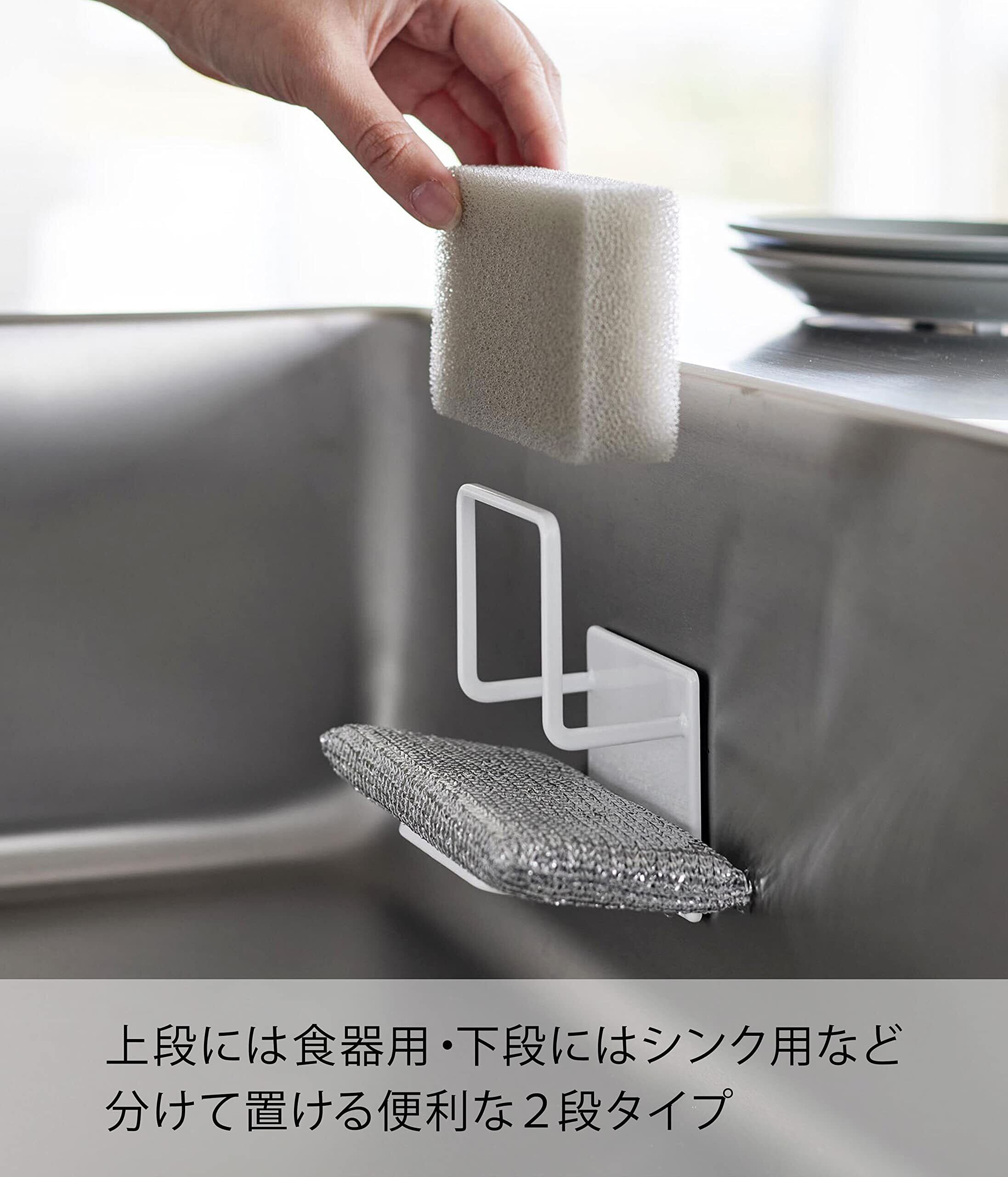 マグネットでお好みの位置に取り付け可能な、2 段のスポンジホルダー。