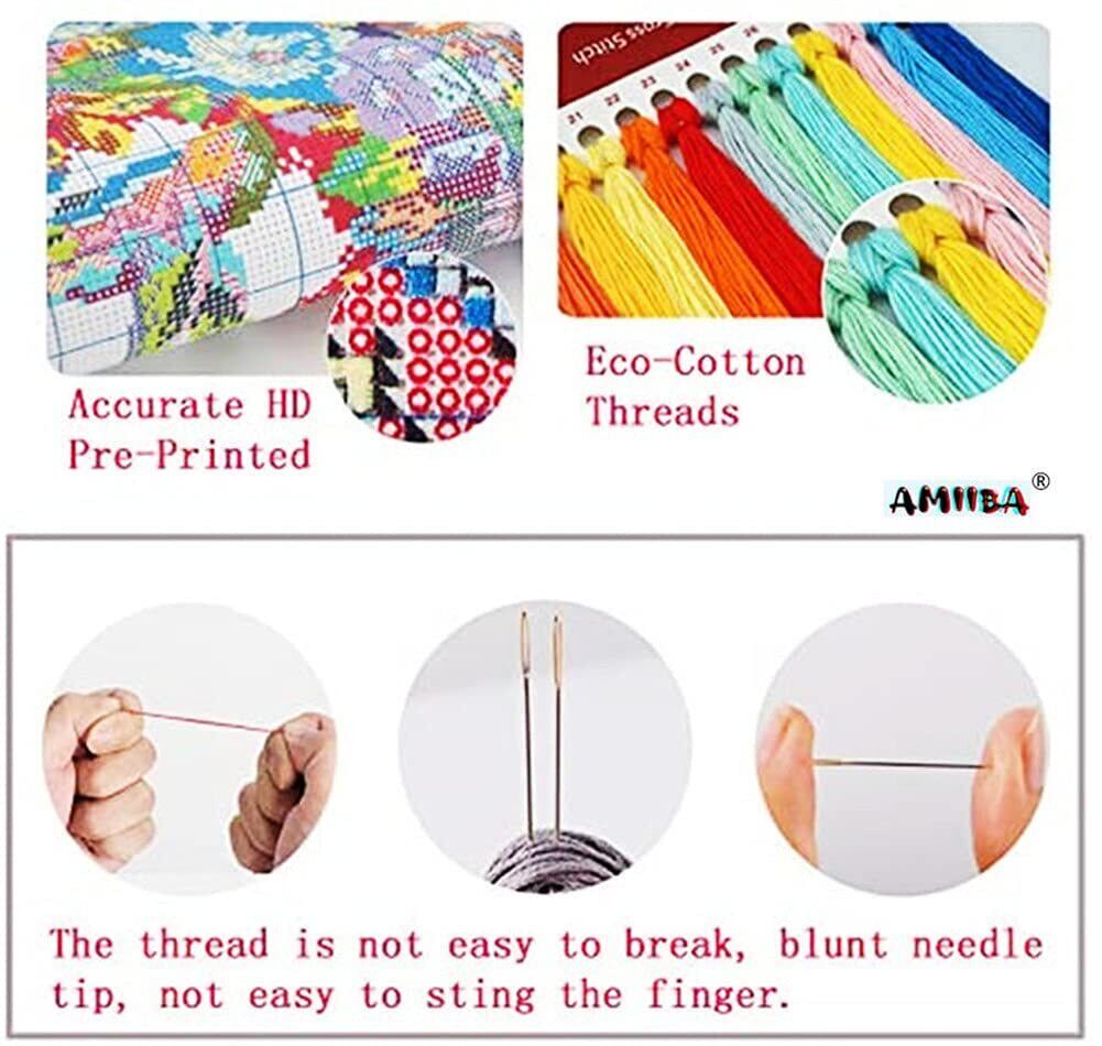 数えられたクロスステッチと比較して、スタンプされたものをより簡単に行うことができ、必要な手順も少なくなります。 初心者の方は、フルステッチとバックステッチの方法を学ぶ必要があります。 当社のキットには、英語で説明した完全な説明が付いています。 クロスステッチの初心者でも、スタンプされたクロスステッチを簡単に仕上げることができます。 自分を信じてください。 お楽しみください!