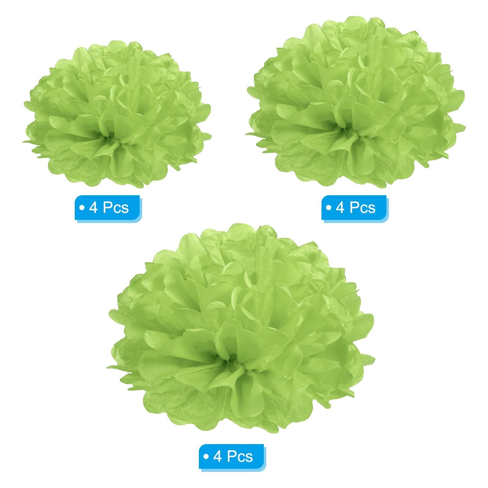 PATIKIL ペーパーフラワー ポンポンフラワー 12個 お花紙 ひな祭り 飾り パーティーグッズ 誕生日 結婚式 卒業式 100日祝い 文化祭 入学祝い パーティー バックドロップ装飾 10cm 15cm 20cm直径 ライム緑