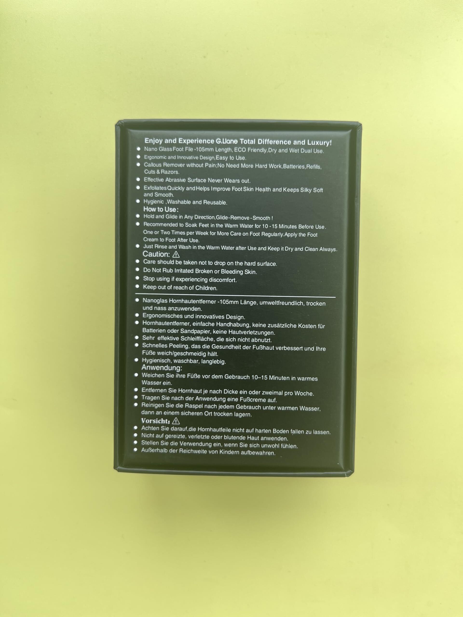 乾燥と湿った状態の両方で使用可能:G.Lianeのプロフェッショナルなナノガラス製ペディキュアフットファイルは、乾燥した足や湿った足に使用でき、自宅でサロンクオリティのペディキュアを提供します。ただし、超滑らかな結果を得るためには、足を5〜10分間浸けることをお勧めします