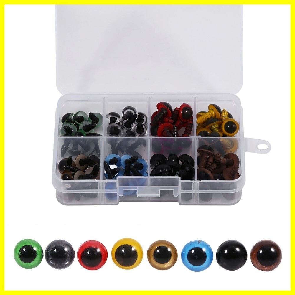 ✩【8色入り】10mm、8色、各色10個でぬいぐるみに必要なぬいぐるみ目は全部揃っています。いろんな色と十分な量があるのでご自由に使用できます。プラスチック製の収納ボックスが付いておるから、色んな目玉をちゃんと収めています。そんなに多くの目玉がばらばらに散らばることを心配せず、ご安心に使用してください。