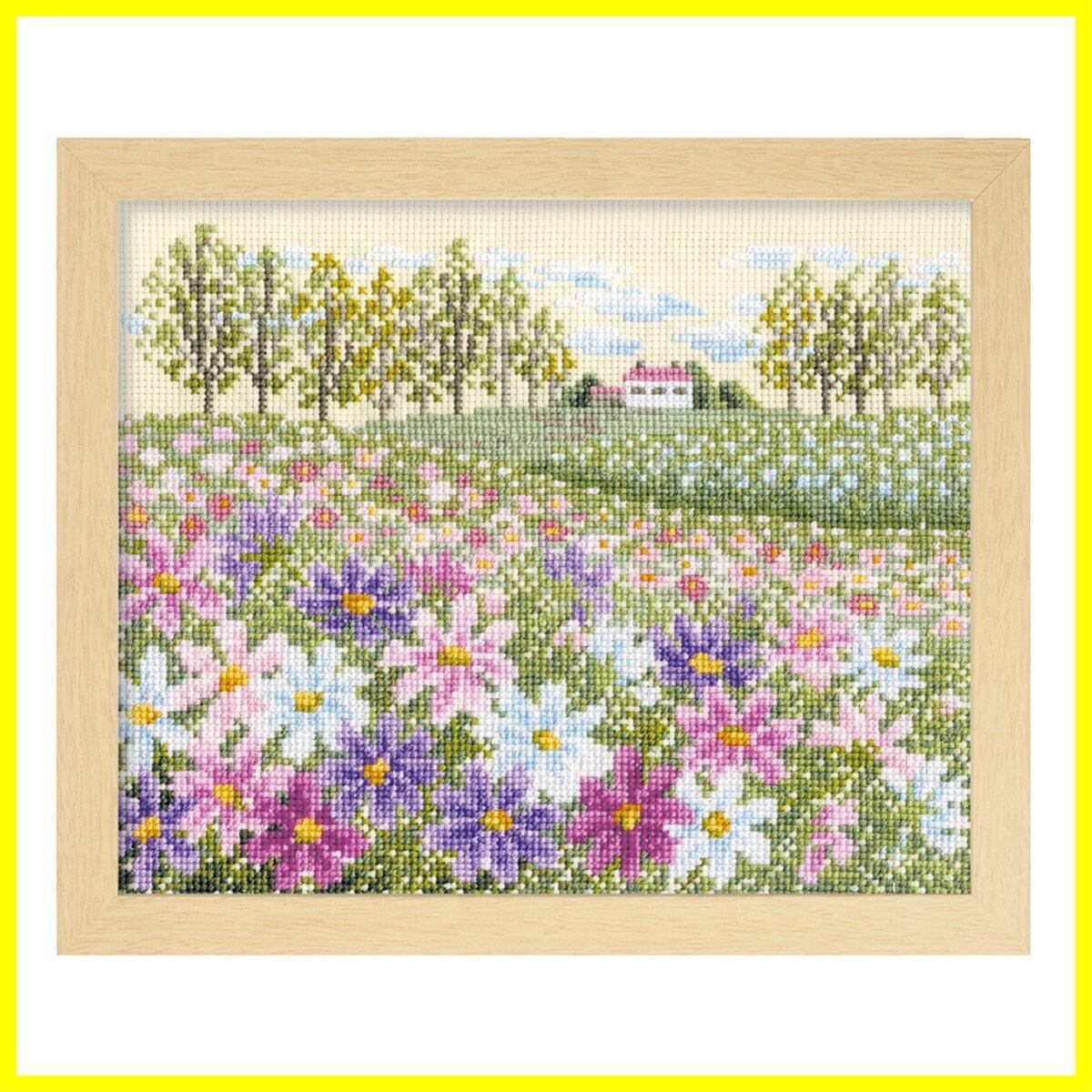 オリムパス製絲(Olympus Thread) クロスステッチ 刺しゅうキット フラワーガーデン 花の咲く風景 コスモスの丘 ベージュ 7310