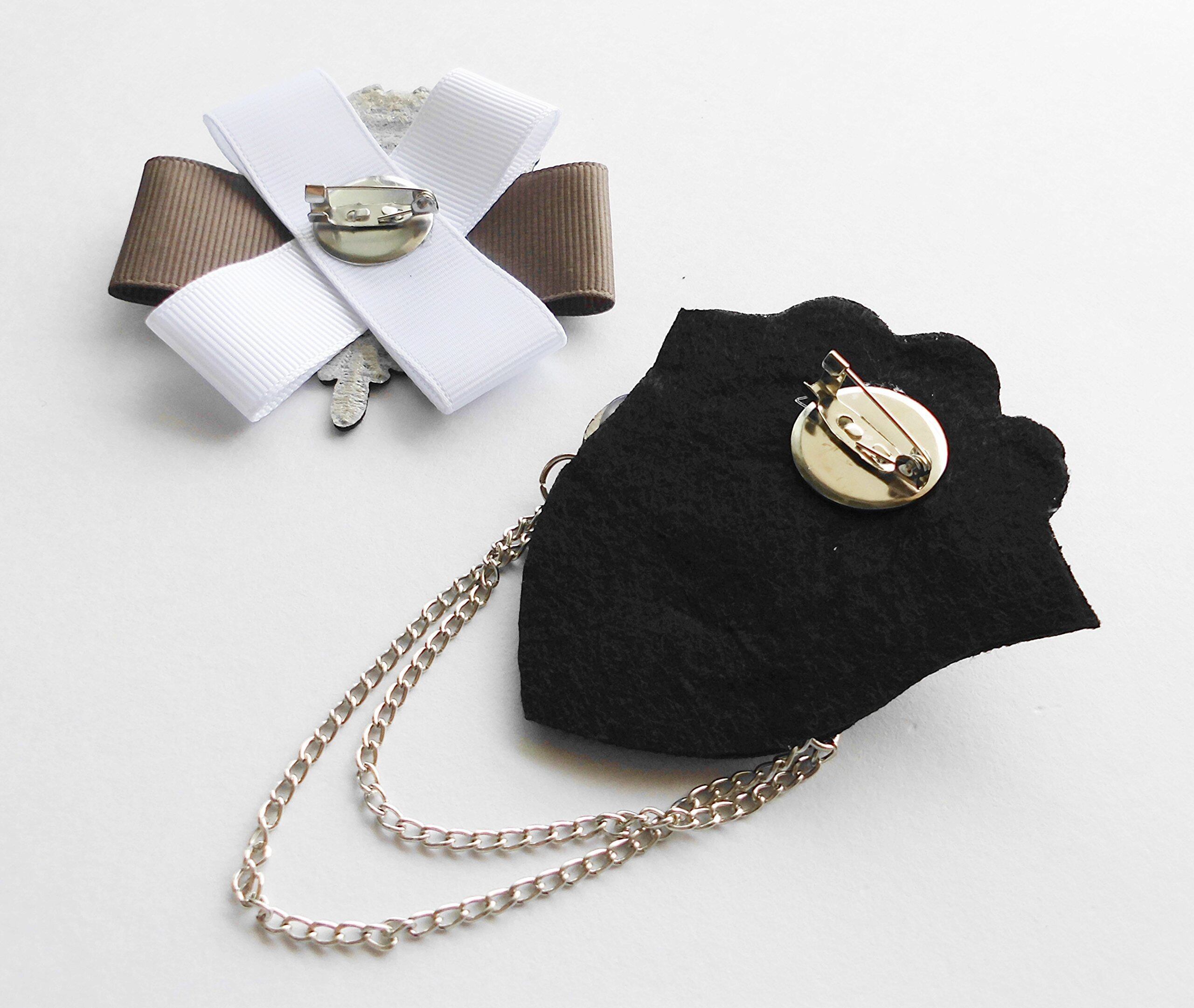 サイズ:(りぼん付き)縦約7cm×横約7cm×高さ1cm、裏面ピン直径約1.7cm