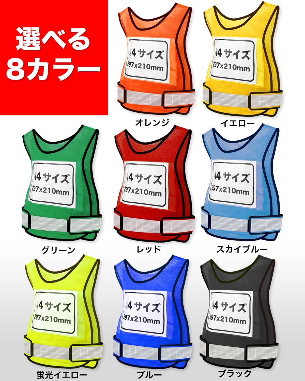 [olnamo] 差し込みベスト 差し込みゼッケン 反射 メッシュ マジックテープ 速乾性