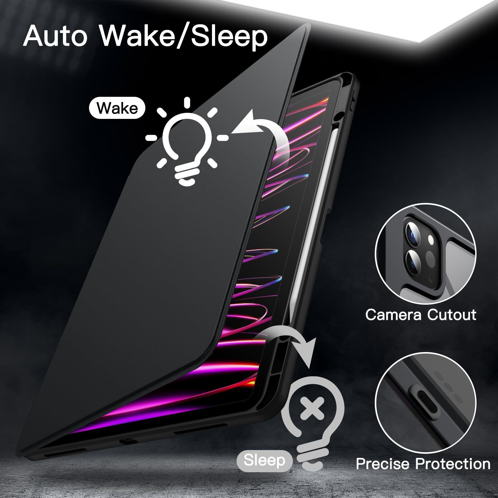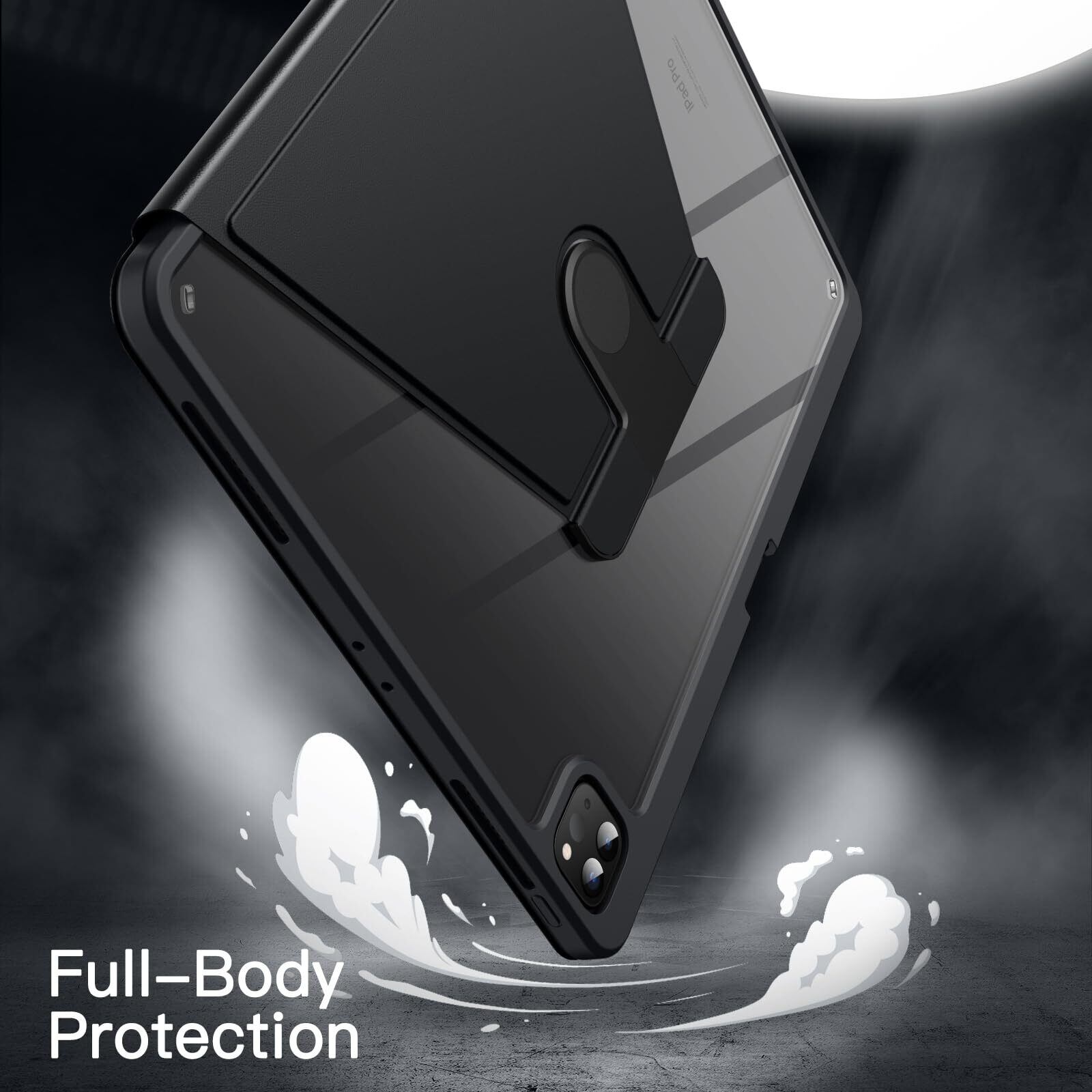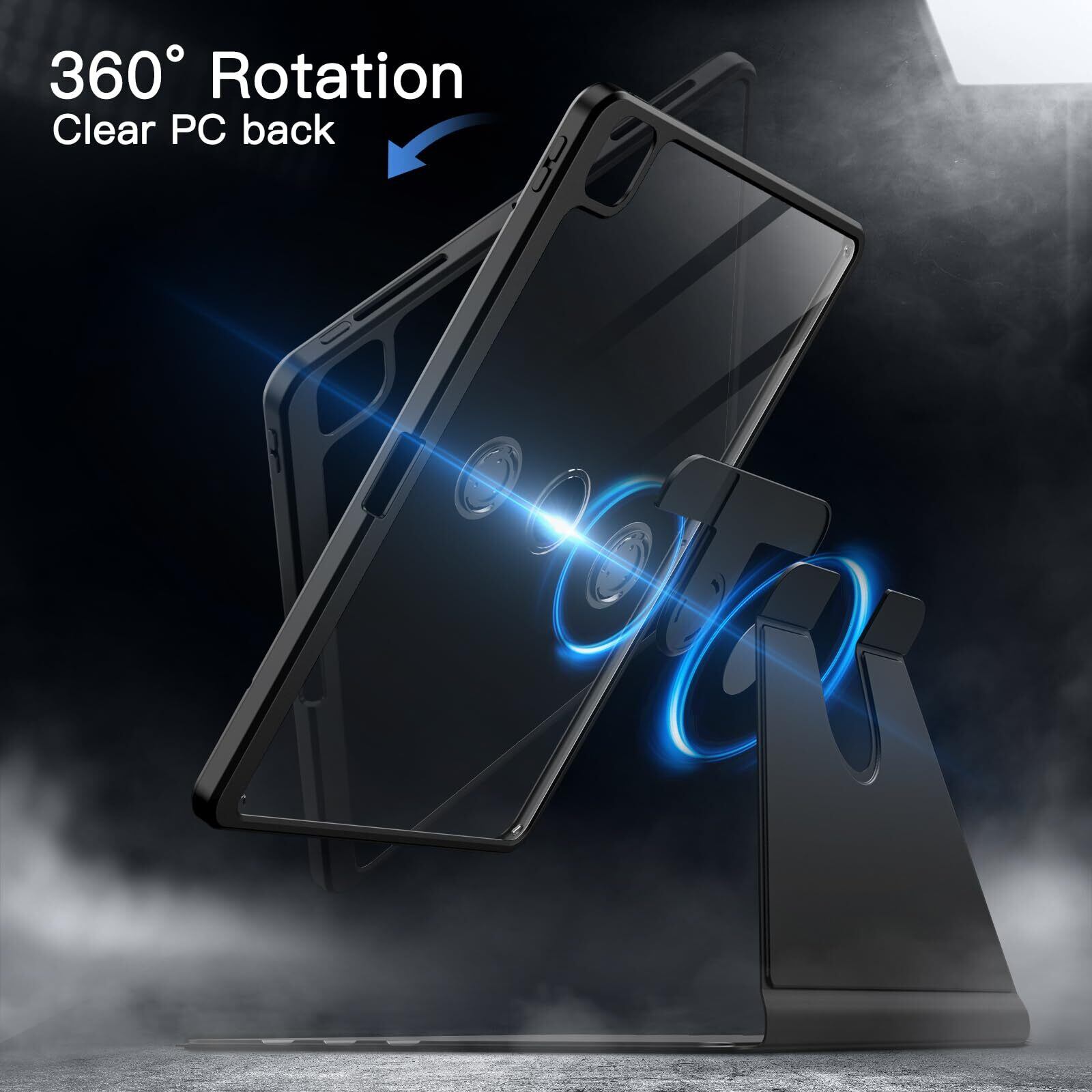 JETech 回転ケース iPad Pro 12.9インチ用 (2022/2021/2020/2018) Pencilホルダー付き 360°回転保護 スタンドカバー クリアバック 自動ウェイク/スリープ (ブラック)