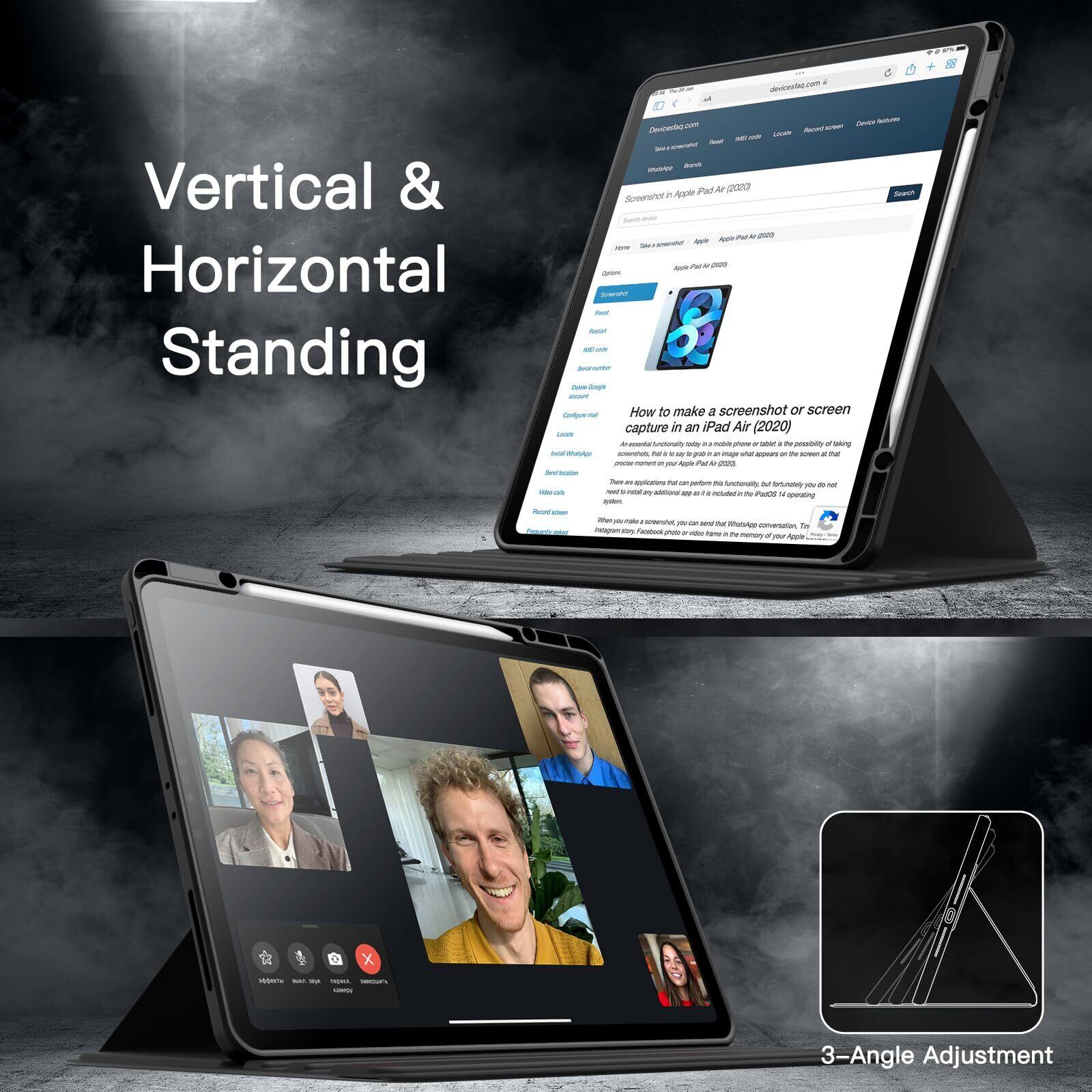 [360°回転] ケースは360°回転スタンド仕様に設計されており、3つの滑り止めの溝によって、縦置きでも横置きでもさまざまな角度でおデバイスを安定的に支えます。実用的に便利です