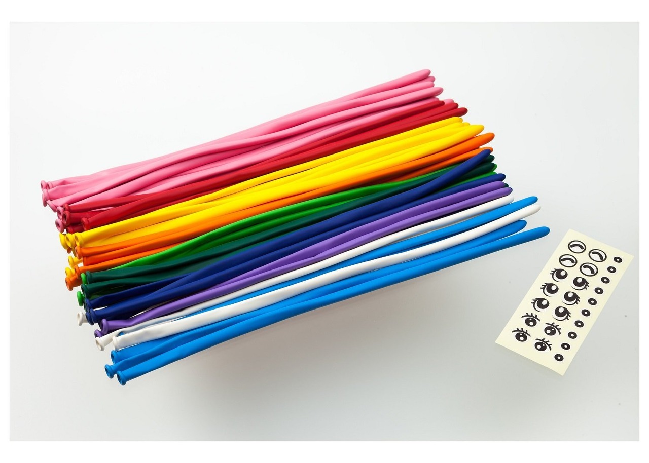 [セット内容]ペンシルバルーン100本15色アソート 作り方説明書 目玉シール1枚