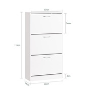 SoBuy シューズボックス スリム 薄型 下駄箱 靴箱 シューズラック おしゃれ 幅60x奥行24x高さ115cm 3段 省スペース 玄関ベンチ 靴 収納 靴収納キャビネット 玄関収納(FSR110-W)