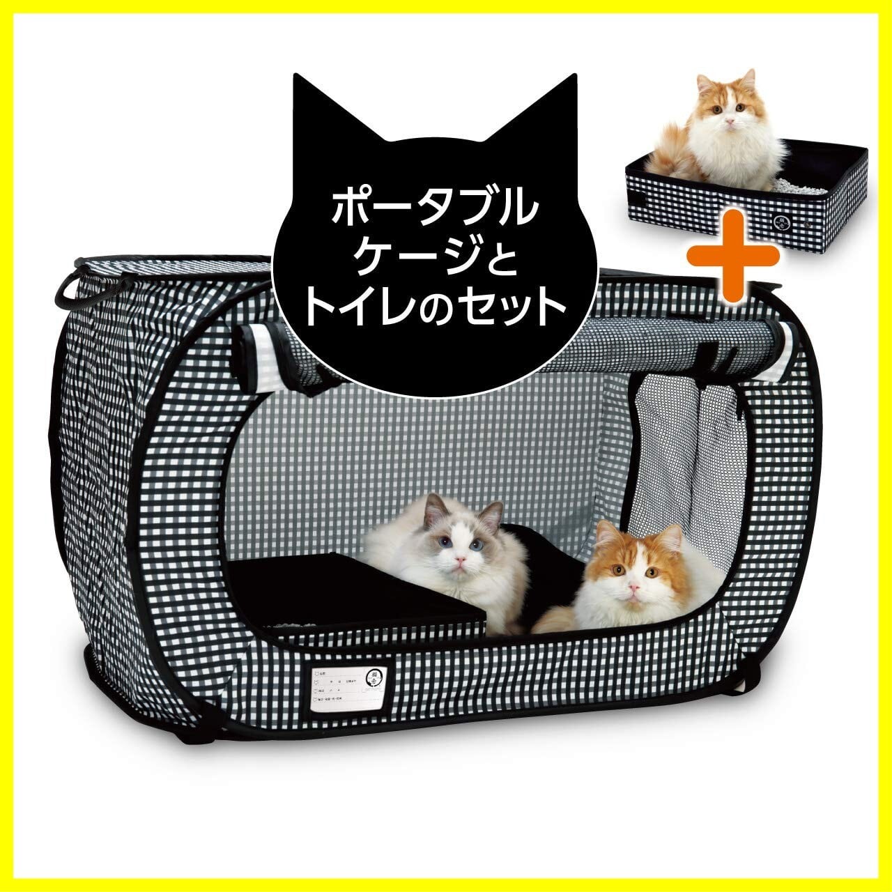 猫壱 ポータブル ケージ トイレ セット 折り畳み可能 防災 移動用 黒