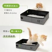【撥水加工で簡単お掃除&お手入れ】ポータブルケージに使用している生地には撥水加工がされています。猫が中で粗相をしてしまっても、サッと拭くだけできれいにでき、お手入れ簡単で清潔な空間をキープできます。(フリースマットのフリース面を除く)ポータブルトイレ内部の黒い布部分は防水仕様になっています。直接猫砂を入れての使用もOK。汚れが中に染み込んでいかないので、サッと拭き取るだけでお掃除できます。水洗いも可能です。(洗濯機のご使用はお避けください)