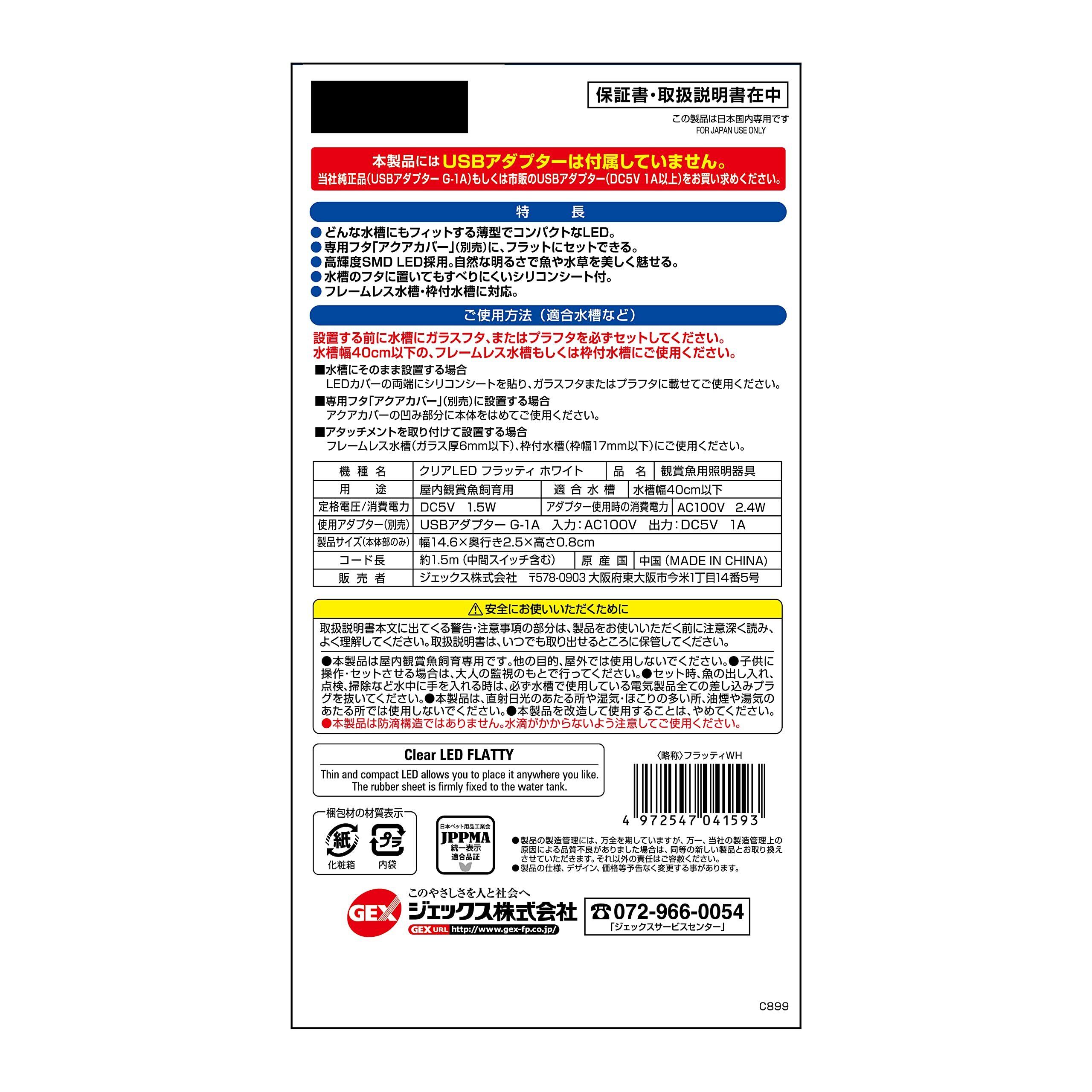 ジェックス GEX クリアLED フラッティ ホワイト スリム高輝度LED 40cm以下水槽
